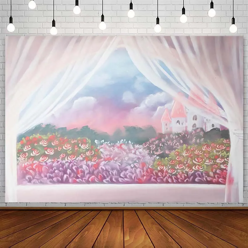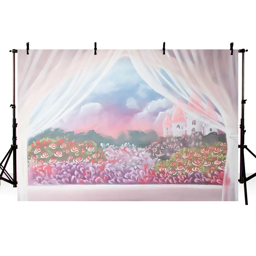 Фон для фотосъемки с изображением замка принцессы с изображением белых облаков