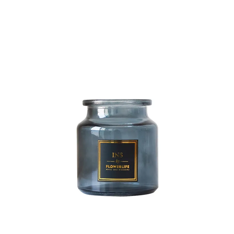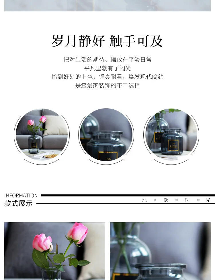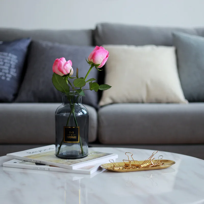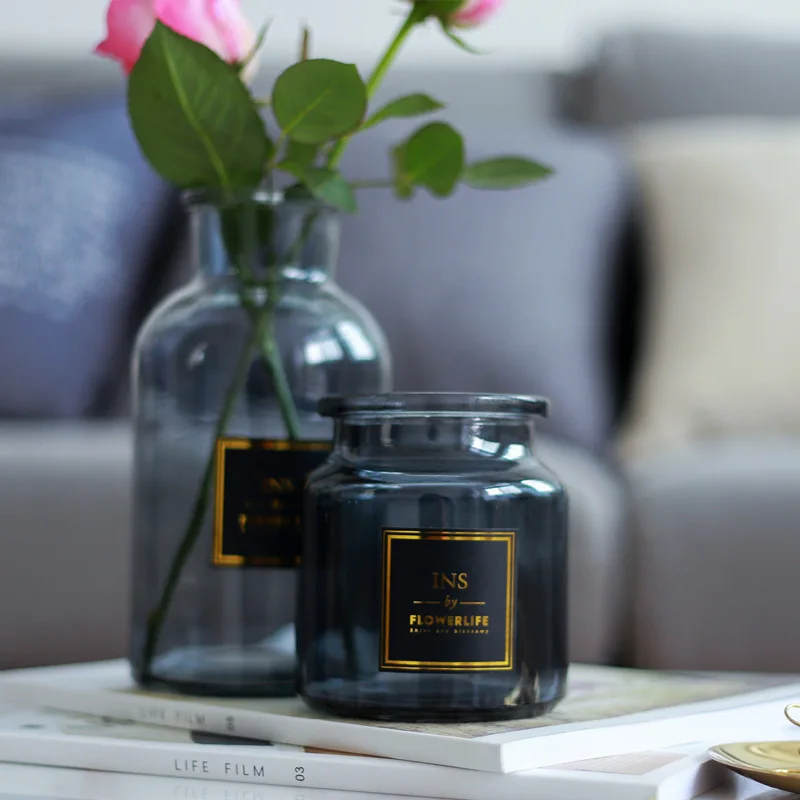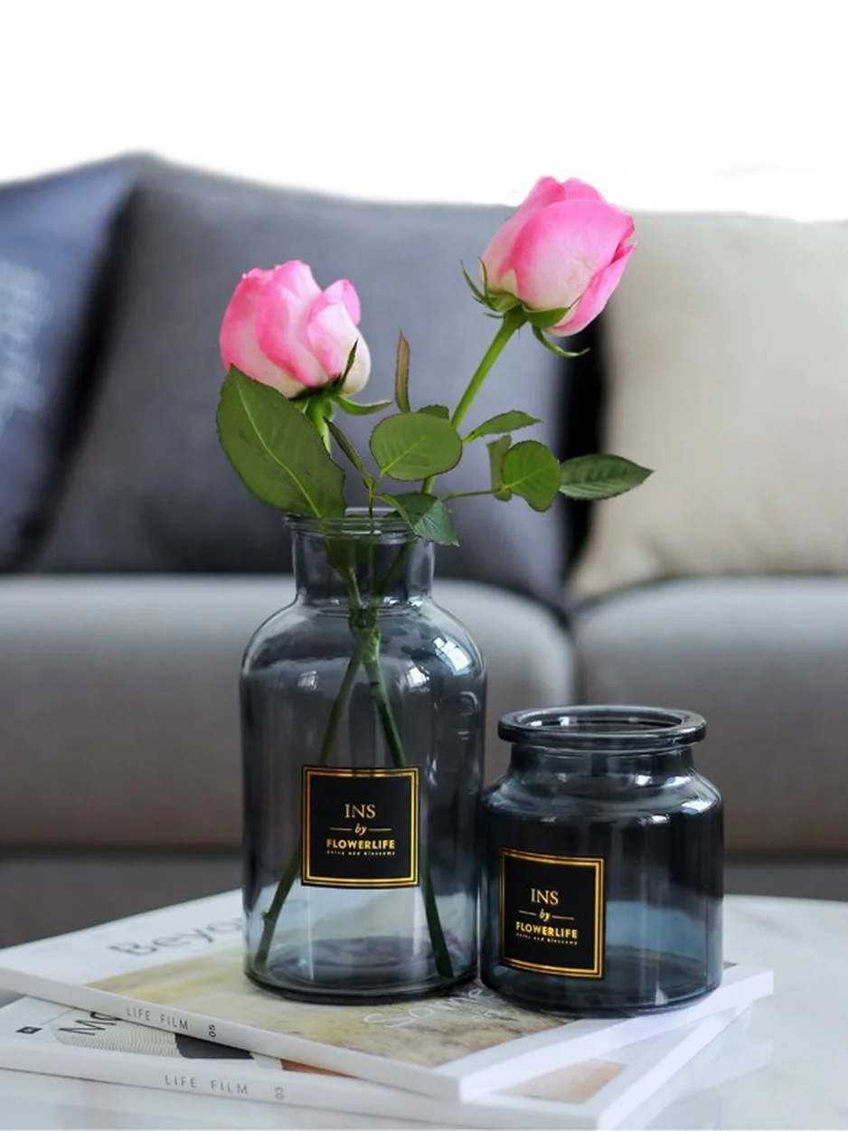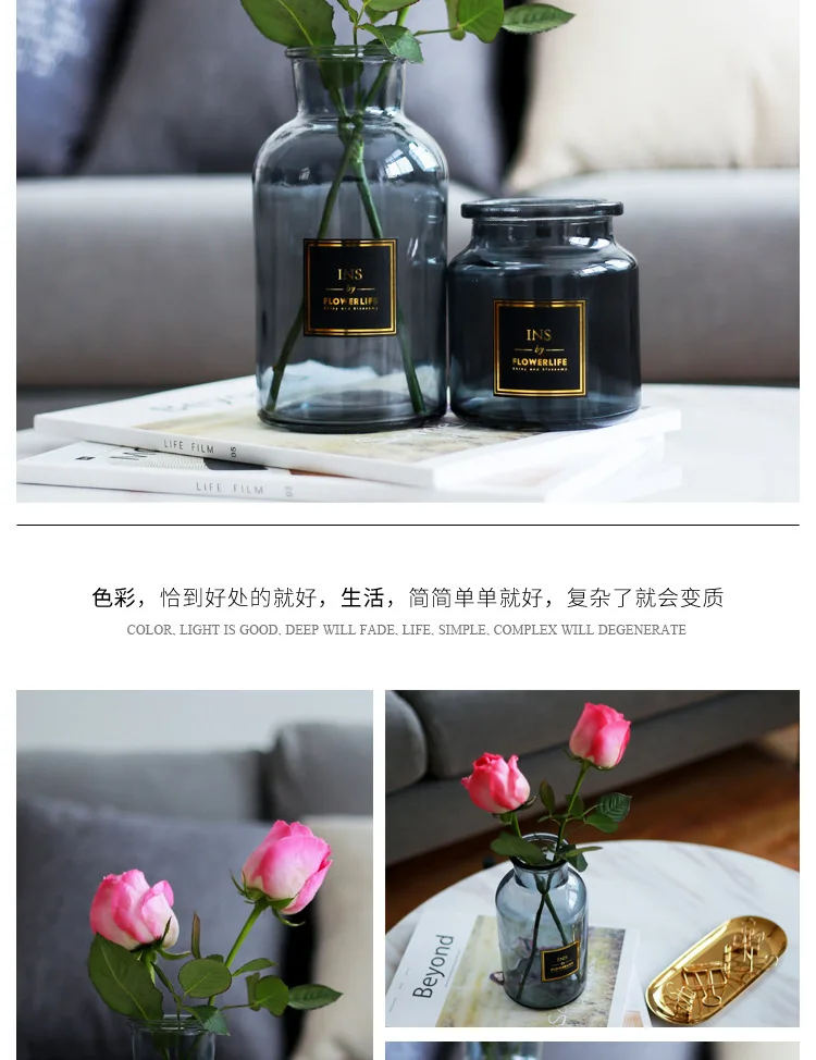 Серая стеклянная ваза в скандинавском стиле, ваза для спальни, украшение для обеденного стола, Маленькая Золотая наклейка
