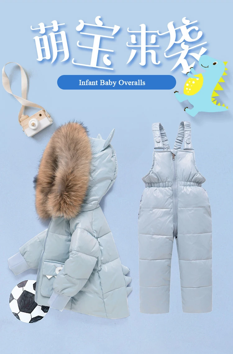 Зимний теплый комплект детской одежды, пуховик с натуральным мехом для маленьких девочек + комбинезон, комбинезон, комбинезон для младенцев, детский лыжный костюм TZ620