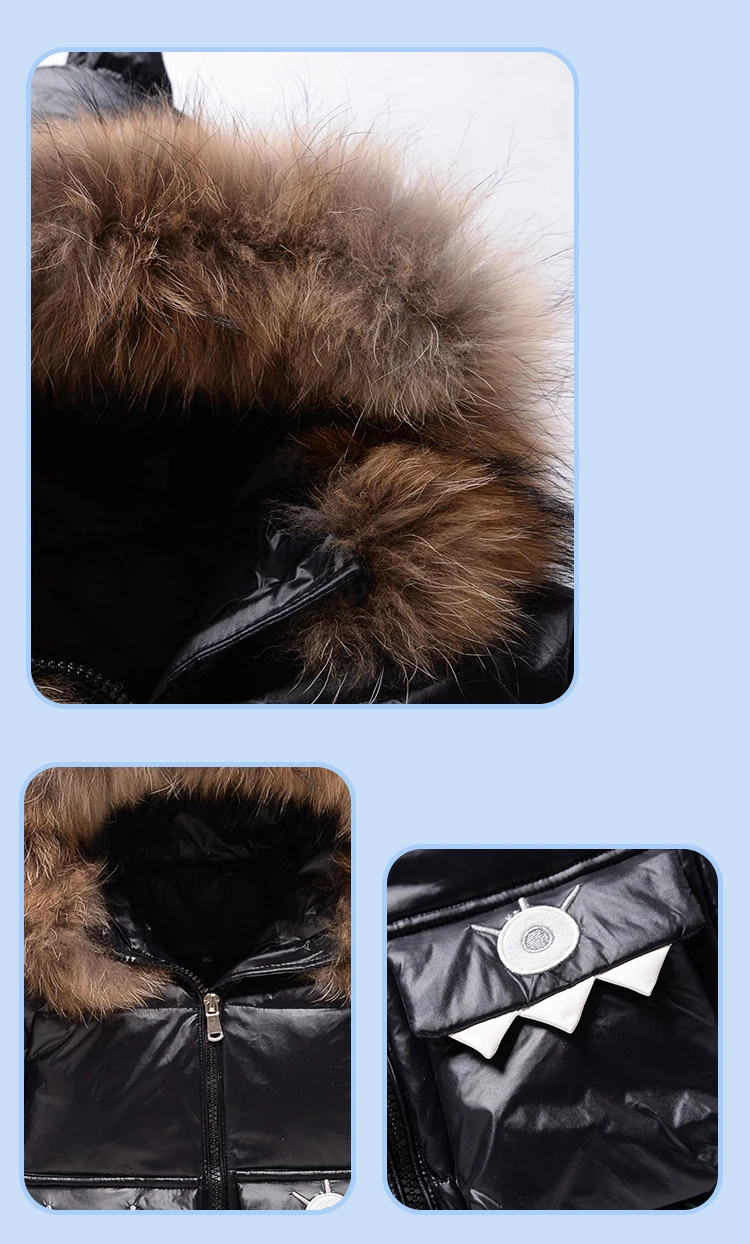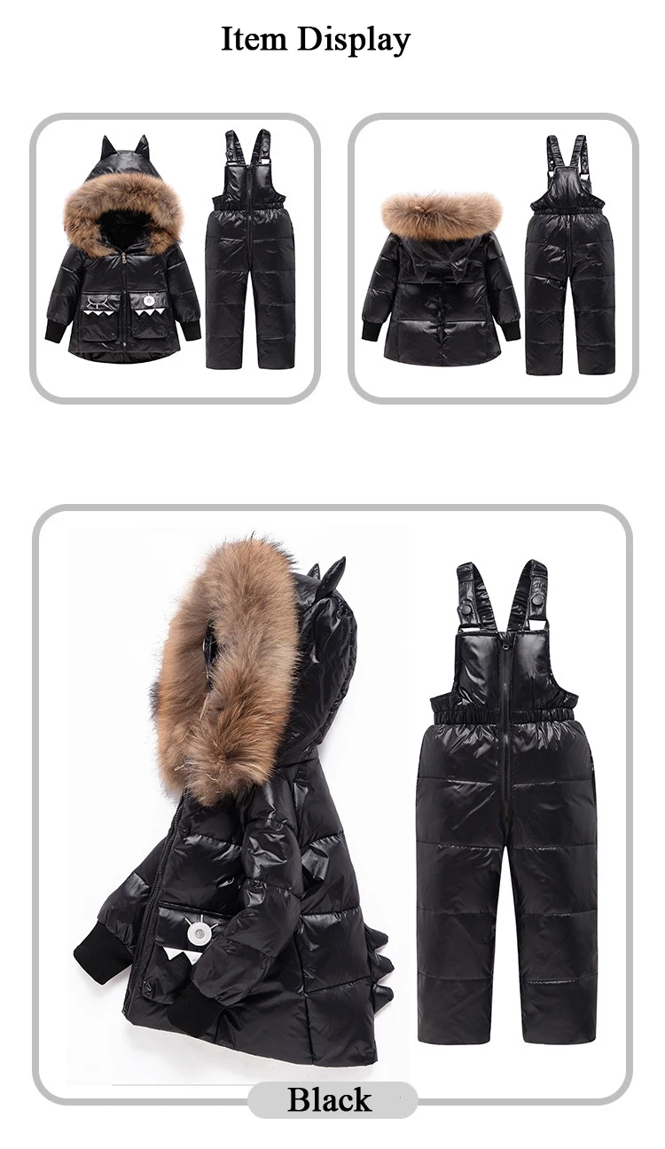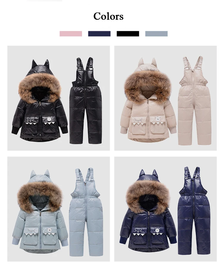 Наименование товара:Зимние теплые комплекты одежды для детей парка с натуральным мехом для маленьких девочек детский лыжный костюм Детский пуховик + комбинезон