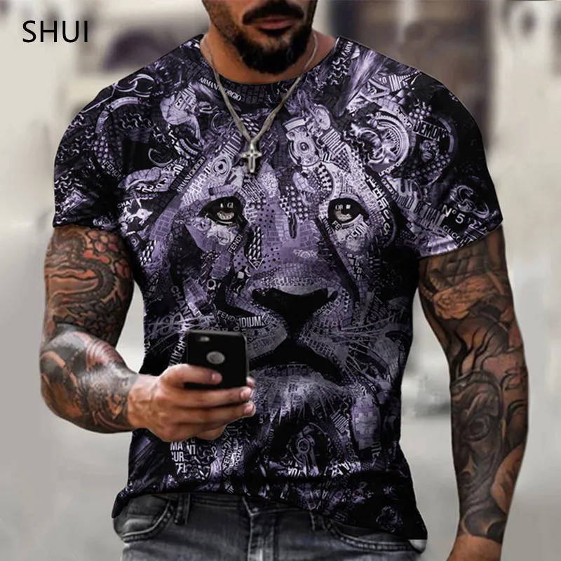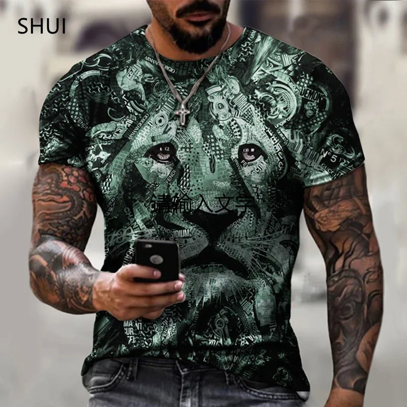 Футболка с 3D принтом Мужская футболка с принтом животного Повседневная футболка с круглым вырезом хип-хоп с коротким рукавом Размер XXS-6XL оверсайз одежда