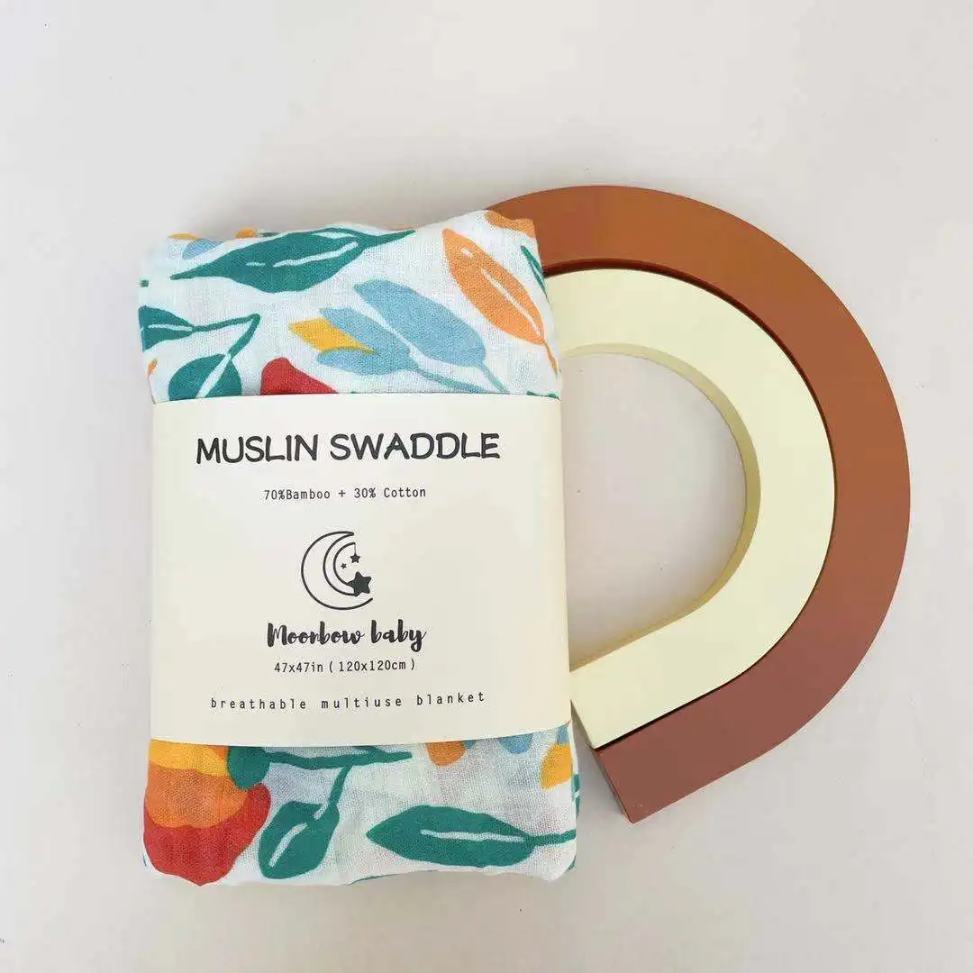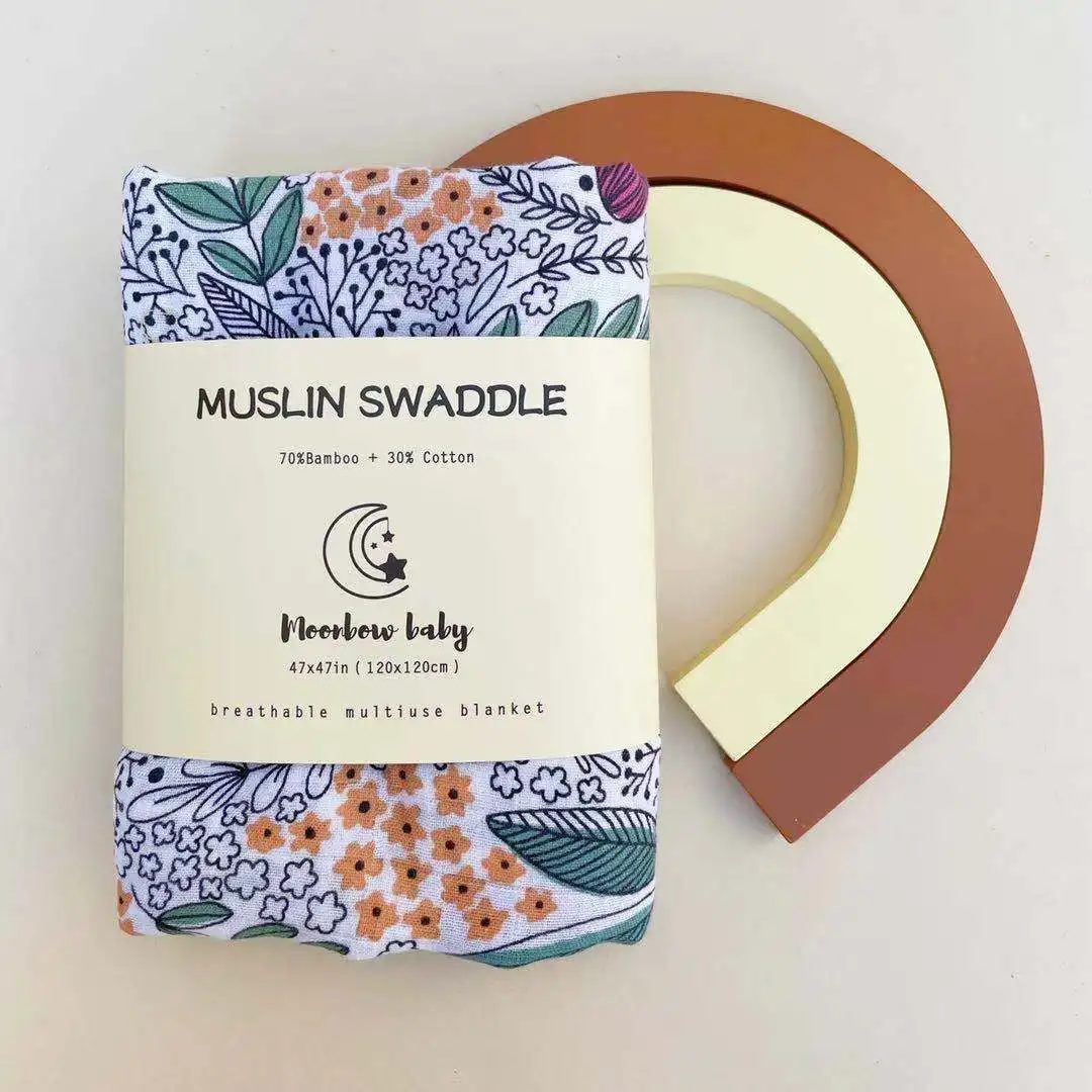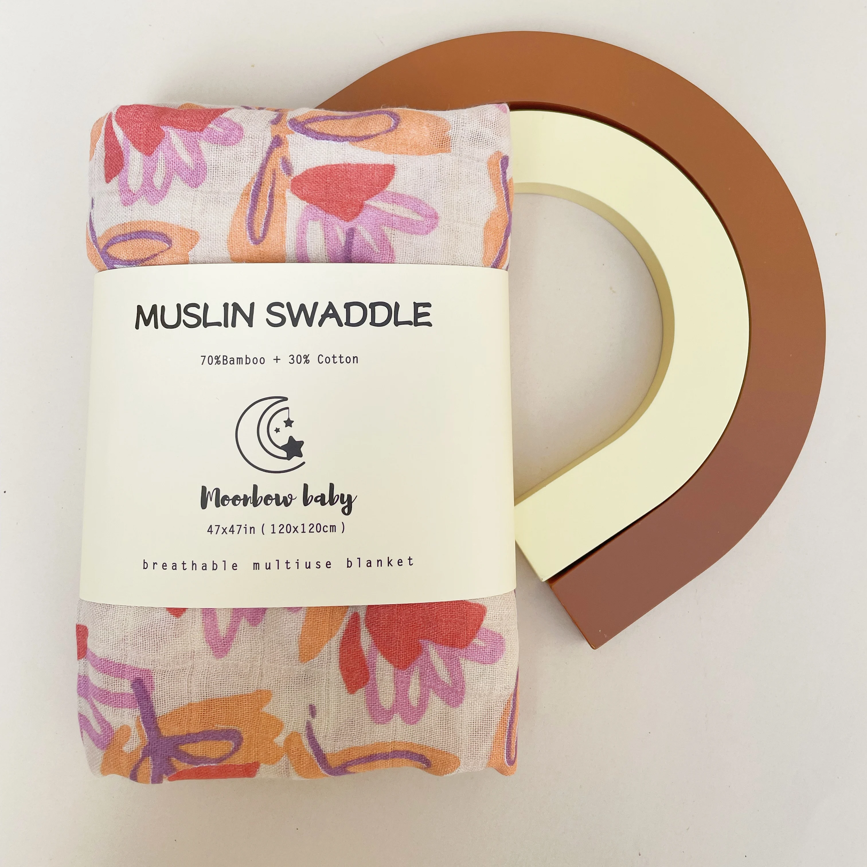 Детские бамбуковые хлопковые муслиновые пеленки Moonbow с свежим цветочным принтом 120x120 см