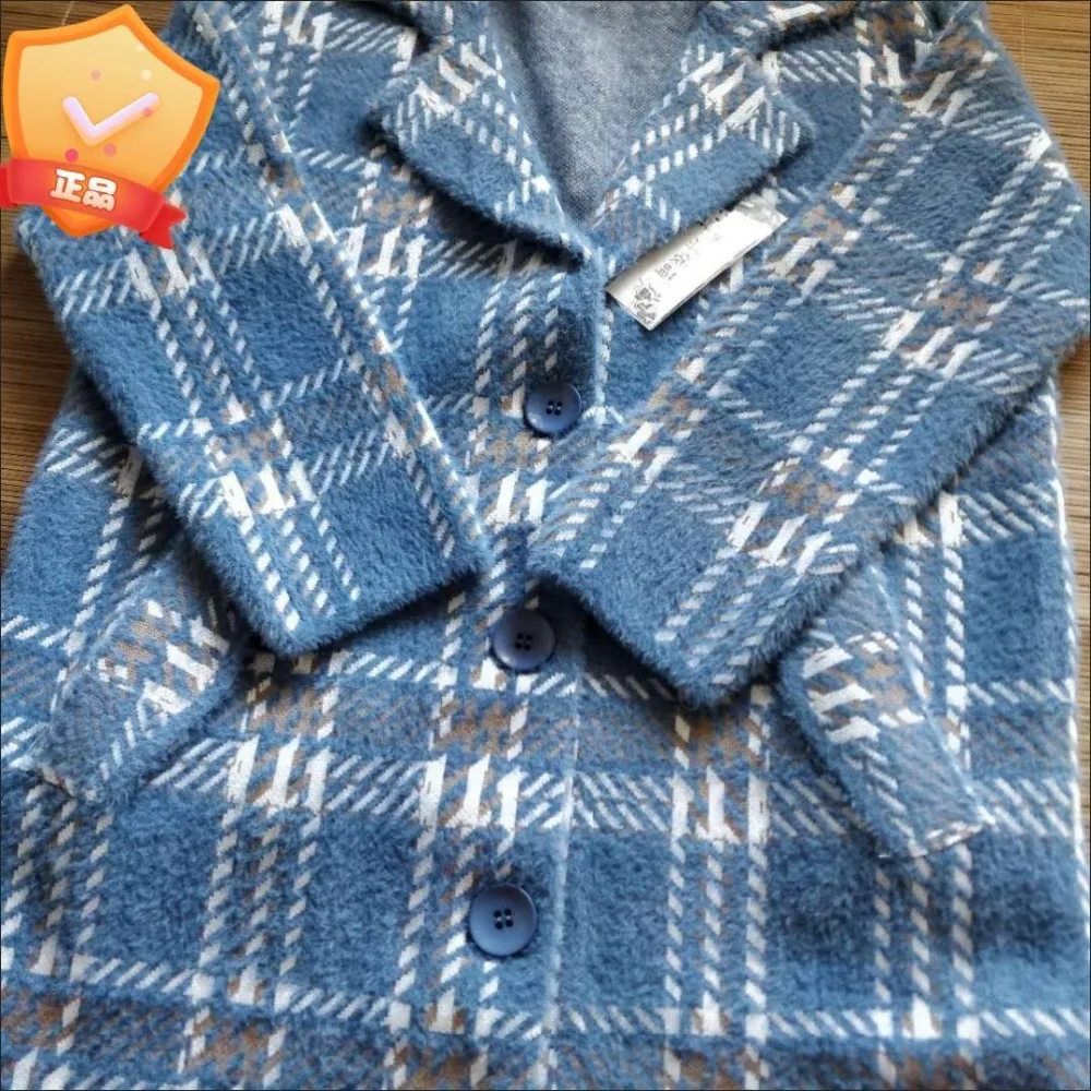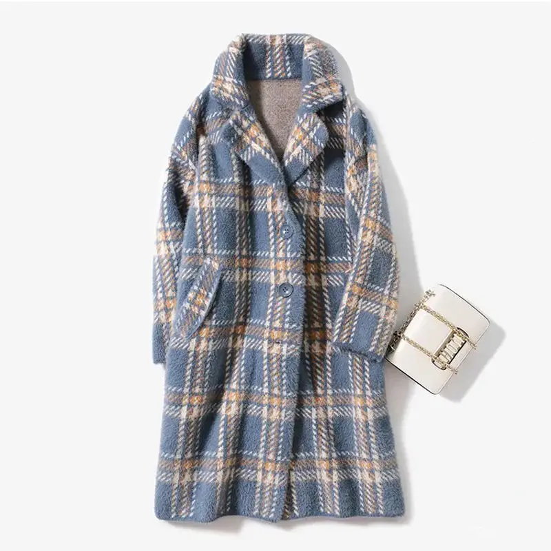 Пальто из искусственной норки и бархата в клетку для осени и зимы, ...