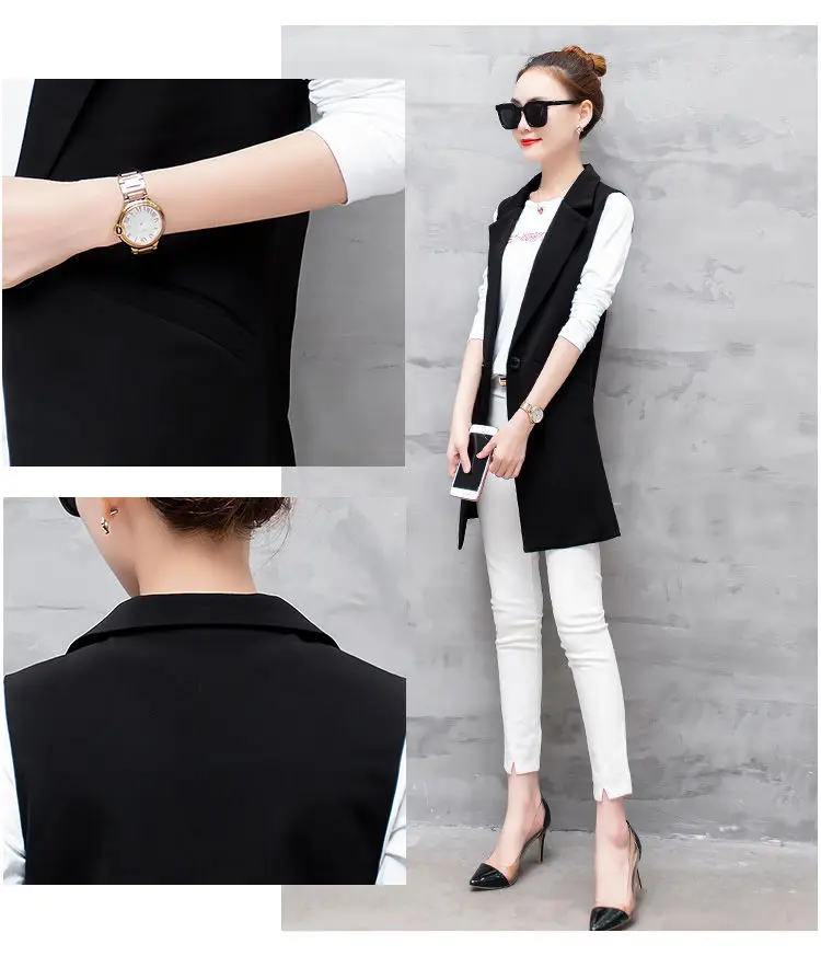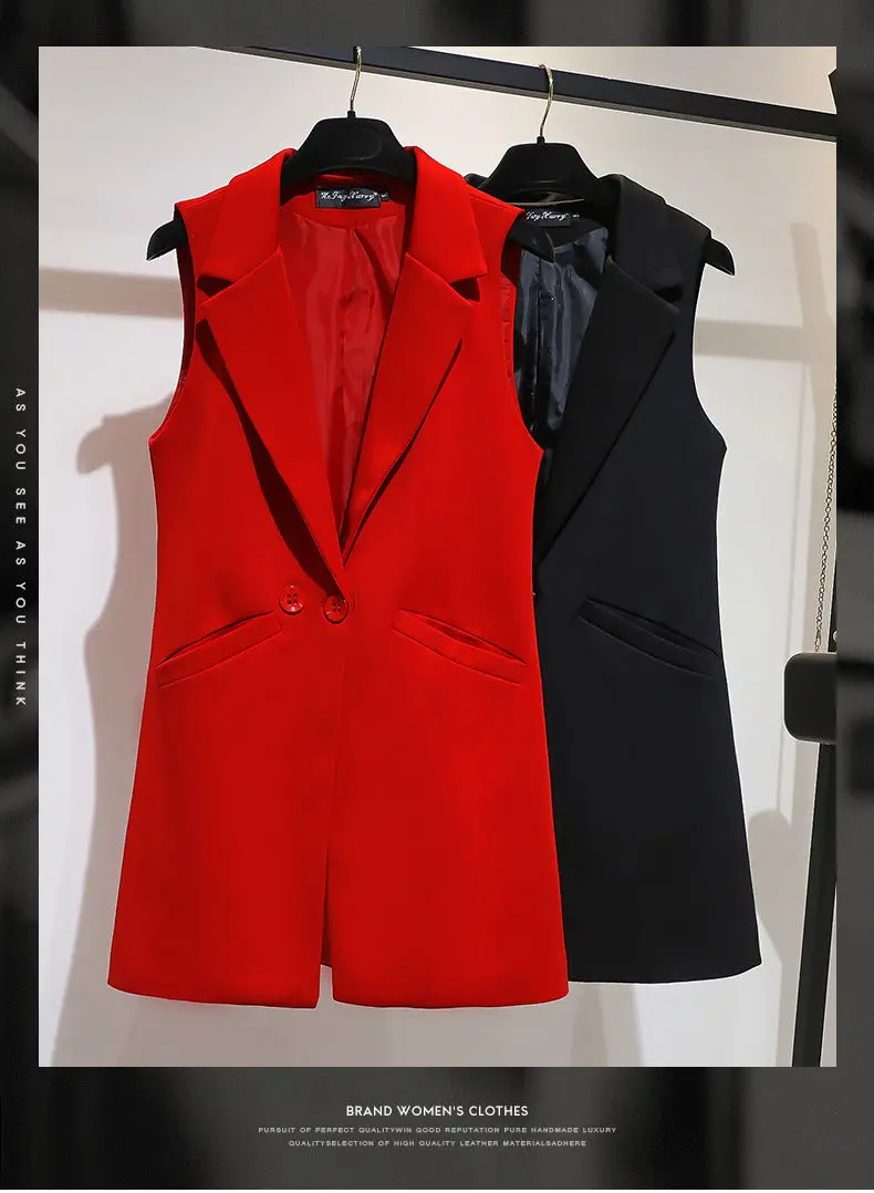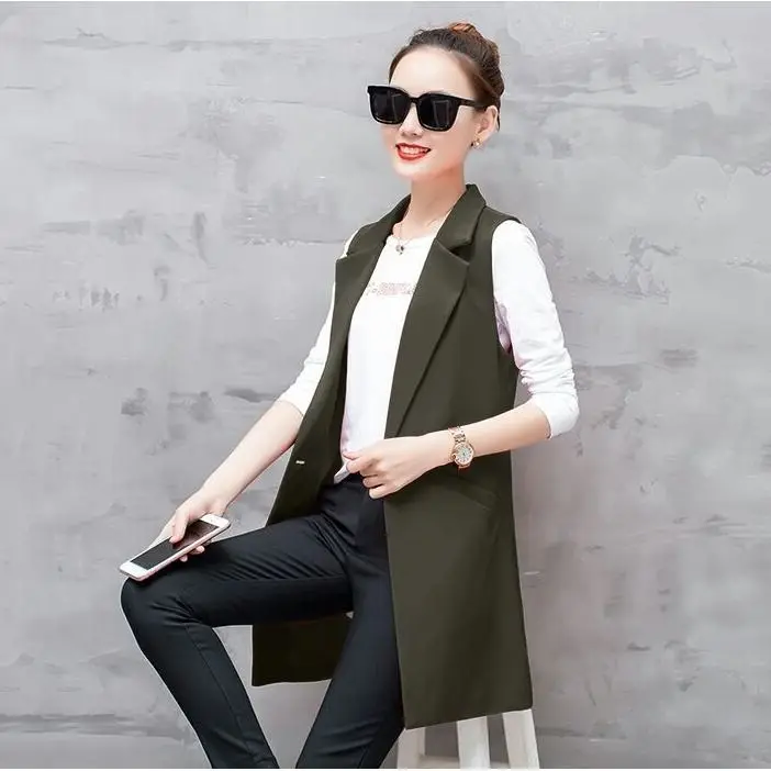 Жилет женский, Длинный блейзер без рукавов, для офиса, размера плюс