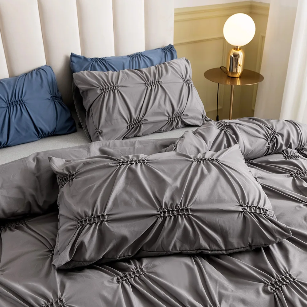 Постельное белье, 200x200, однотонное, с плиссированным пододеяльником