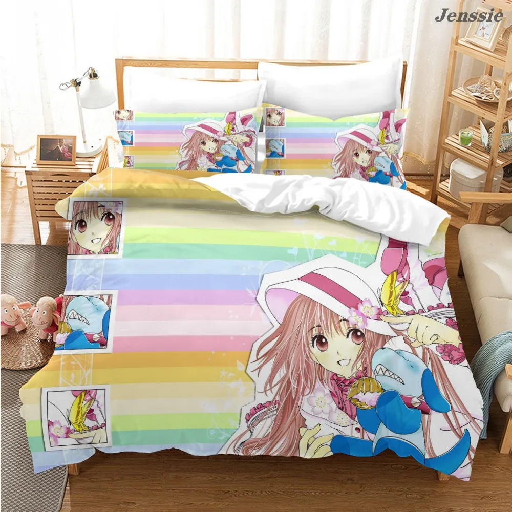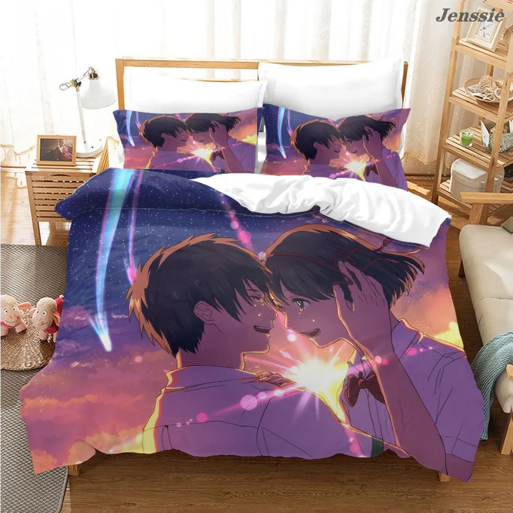 Платье с рисунком из мультфильмов медведя пододеяльник один двойной набор постельного белья Queen King комплект короткая футболка с героями из японского аниме «Стёганое одеяло с наволочка Покрывало