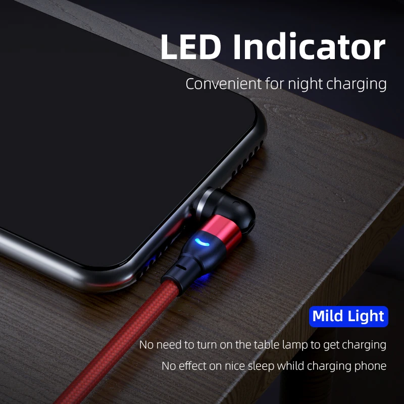 Магнитный USB-кабель 90 градусов, светодиодный Micro USB Тип C, зарядный провод, 3A, шнур для быстрой зарядки и передачи данных для iPhone 12, 11, Xiaomi 11, Huawei P40