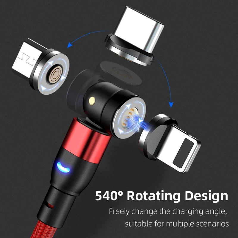 Магнитный кабель Micro USB Type-C, с поворотом на 540 градусов, для...