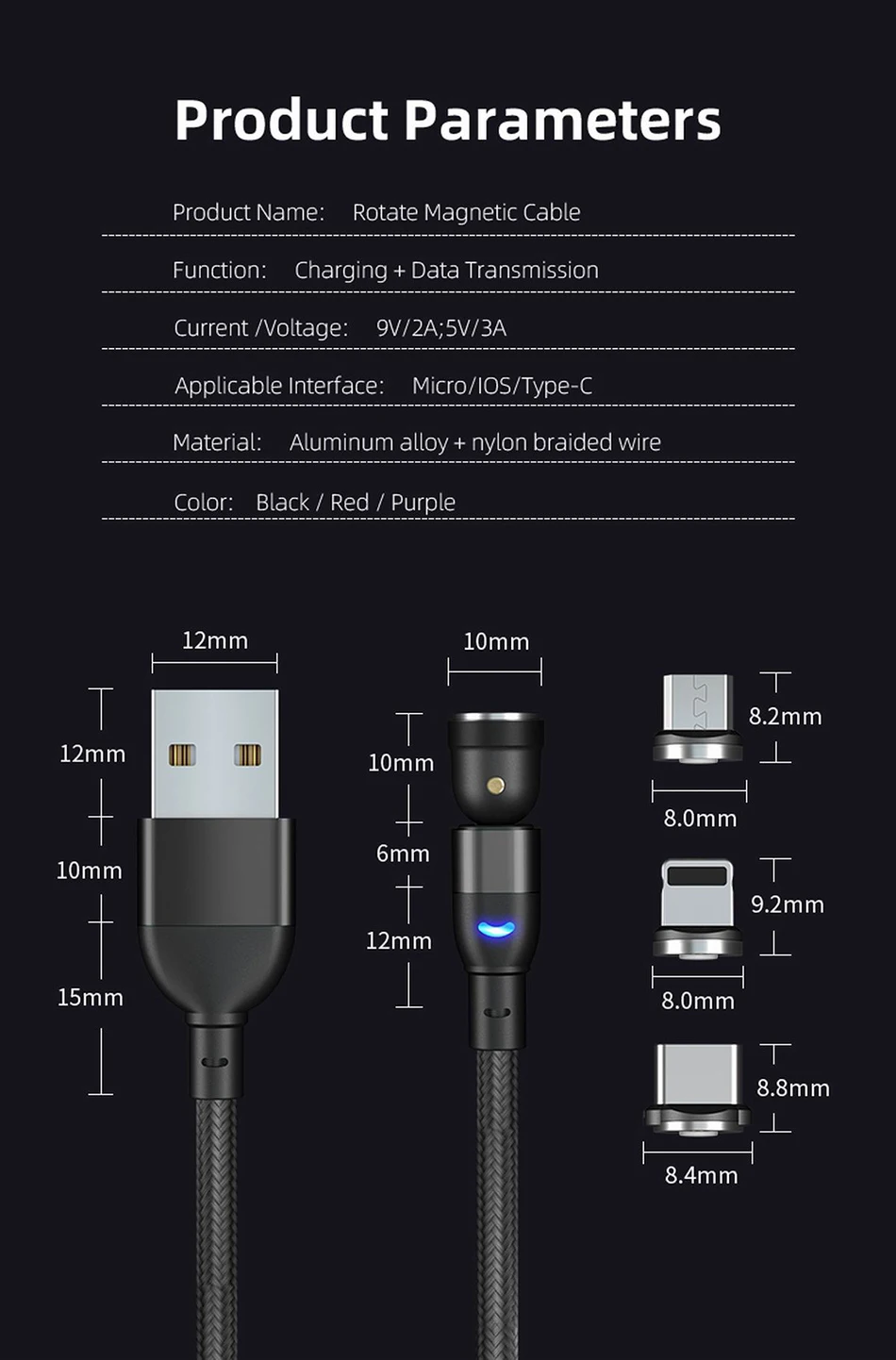 Feature 8USB Type C & Micro USB Fast Charging Cable