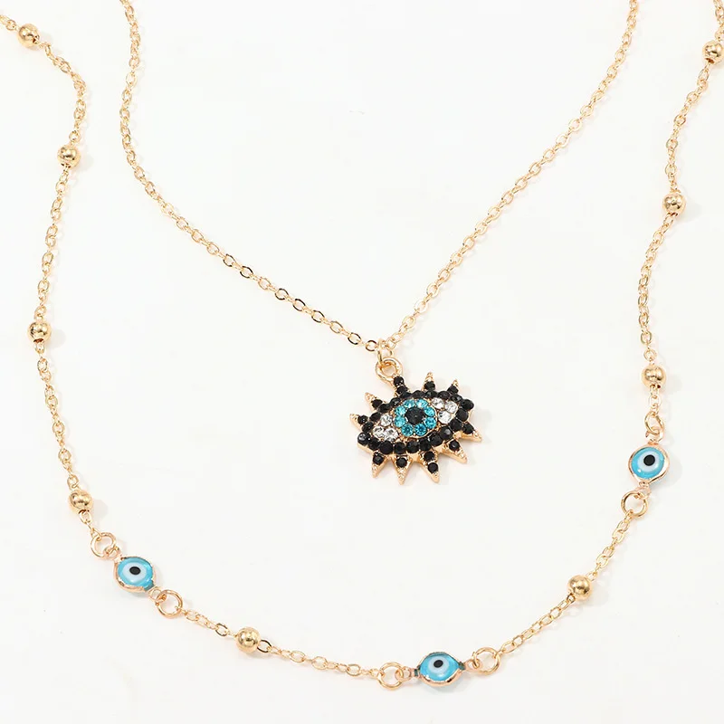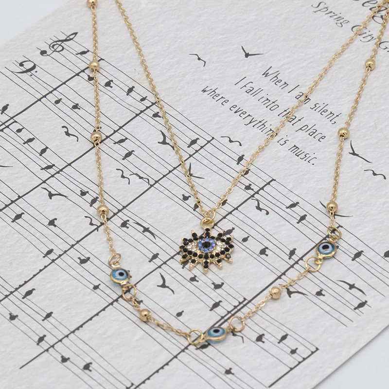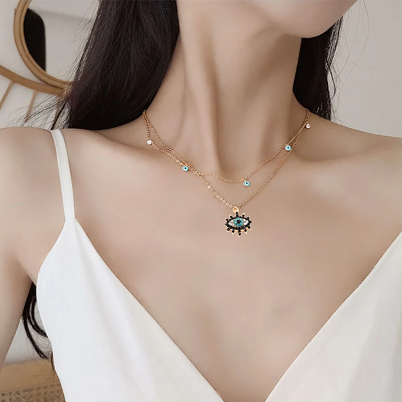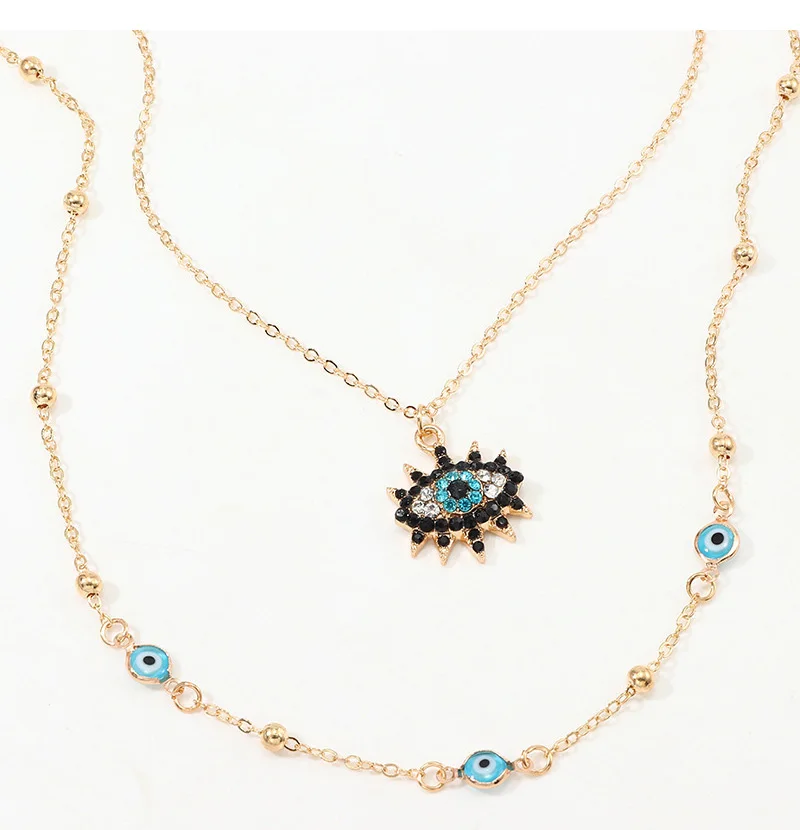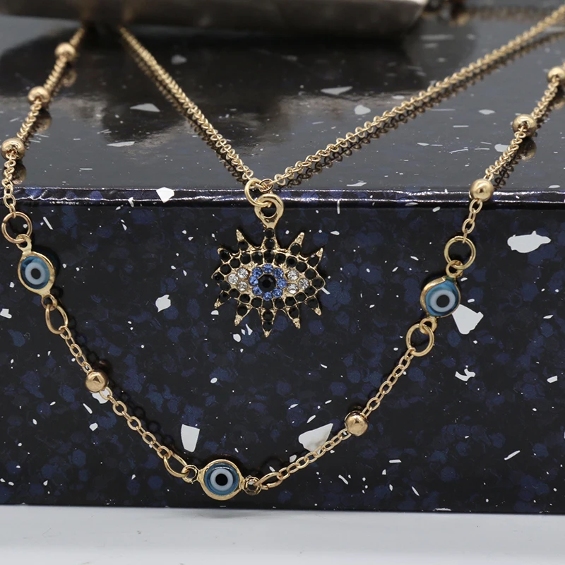 Многослойное ожерелье, составная цепочка Кулон от сглаза для женщин...