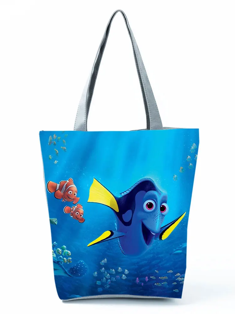 Disney Finding Nemo, сумочки в форме рыбки, сумка для покупок с животными, синяя, высокая емкость, Женская дорожная пляжная сумка, сумка для хранения с принтом акулы
