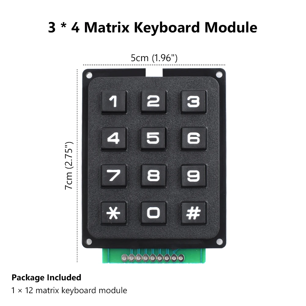 Матрица 12/16 кнопок.Он предлагает 0-9 цифр, A-D букв, символы стандартной звезды (*) и хеш (#).