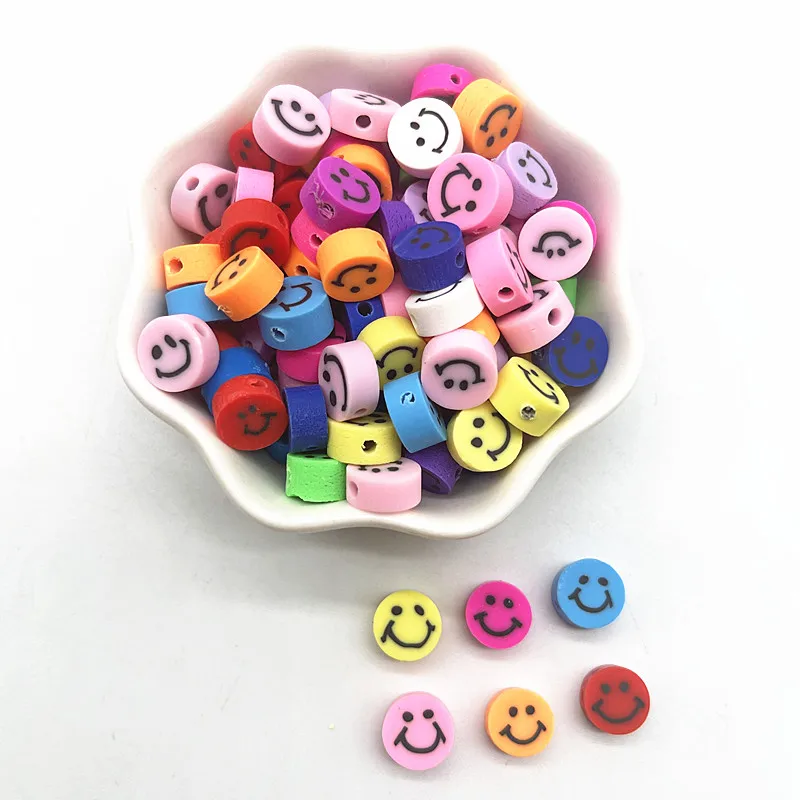 30 шт.лот 10 мм выраженные смайлики, глиняные бусины, разделители, ...