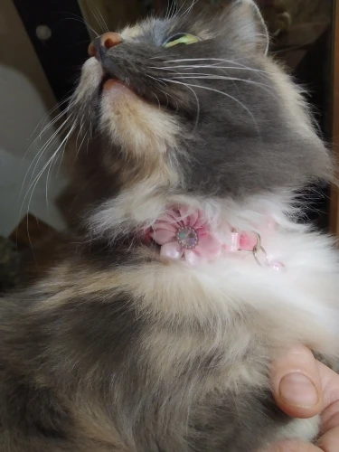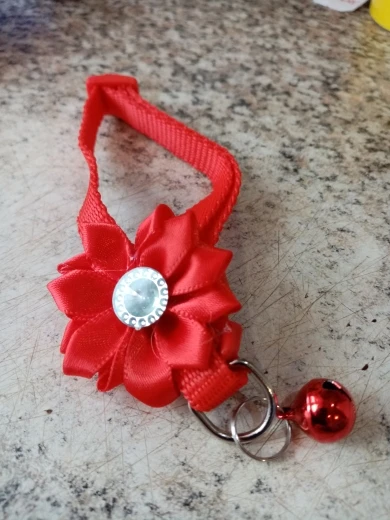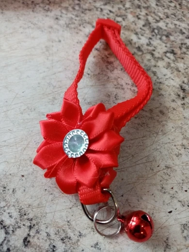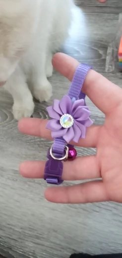 Es un poco más pequeño de lo que pense, a mi gatita peludita se le tapa la flor, pero con animalitos de pelo corto se verá muy hermoso