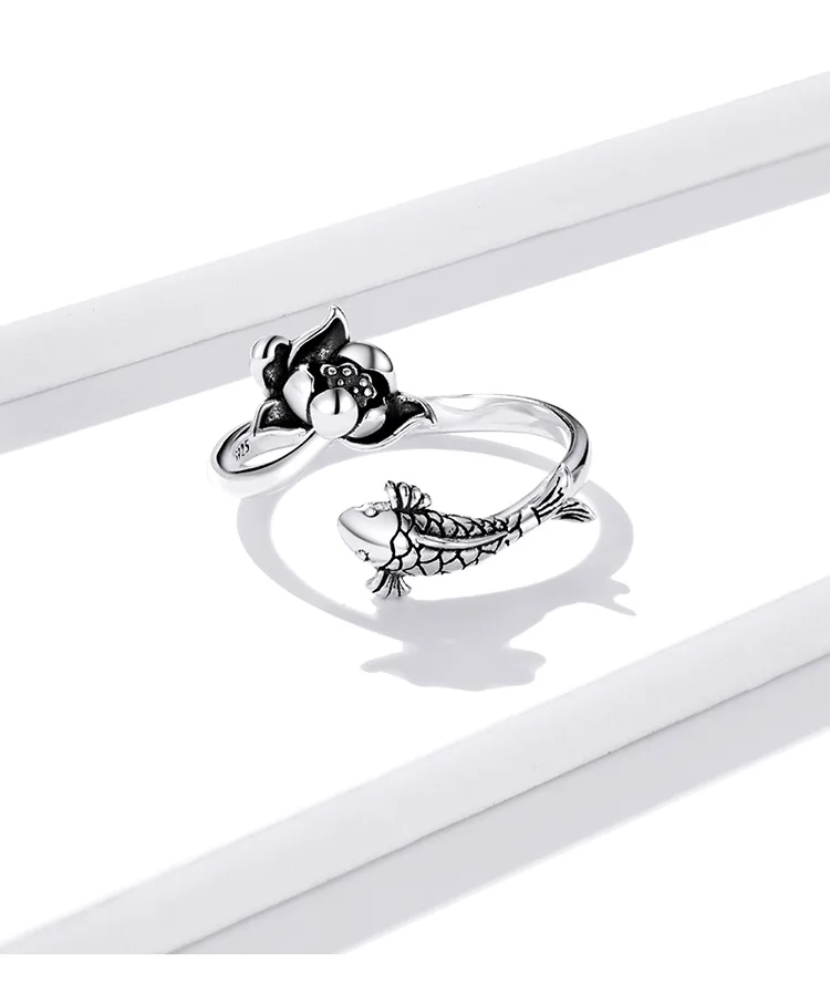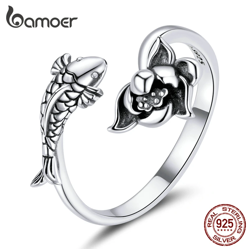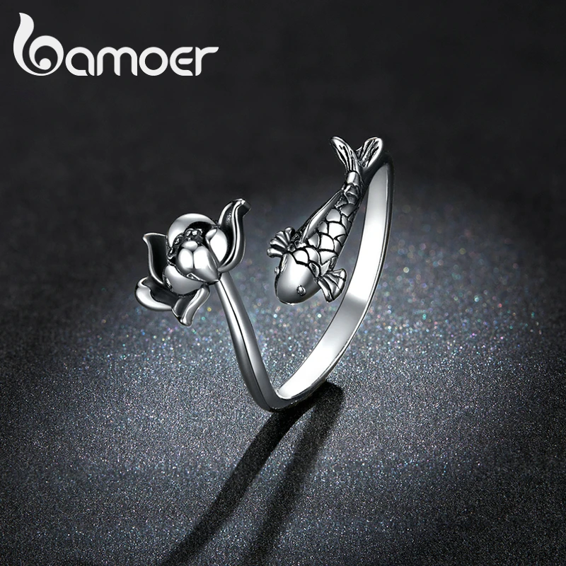 Bamoer нежный лотос Koi счастливое кольцо для женщин из натуральной...