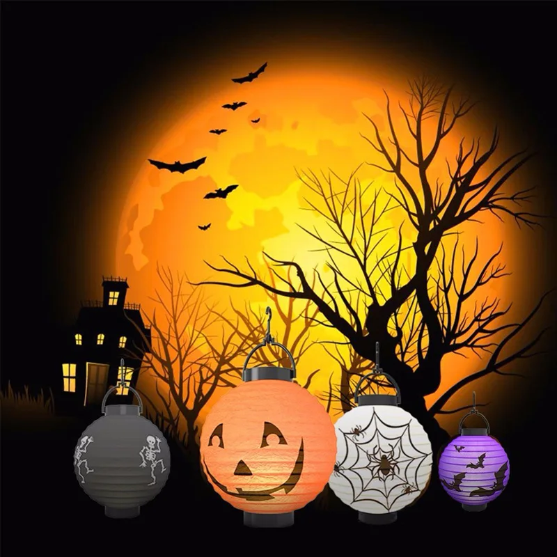 Светодиодный круглый бумажный фонарь, Хэллоуин, Подвесная лампа лет...