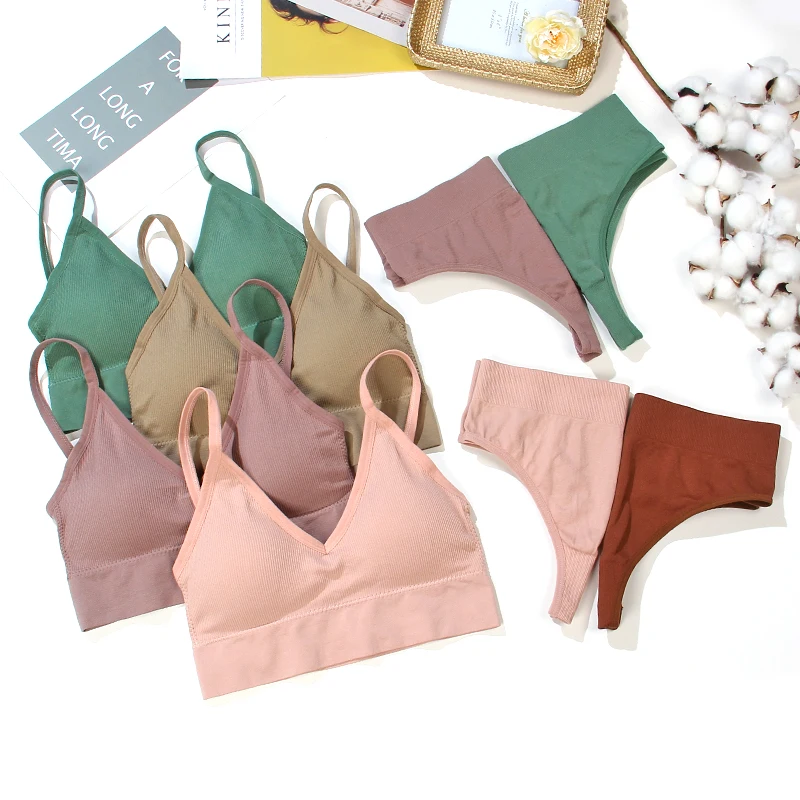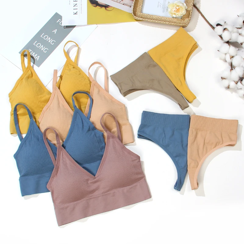 Трусы-стринги женские, хб, бесшовные, бюстгальтер с вкладышами пуш ап