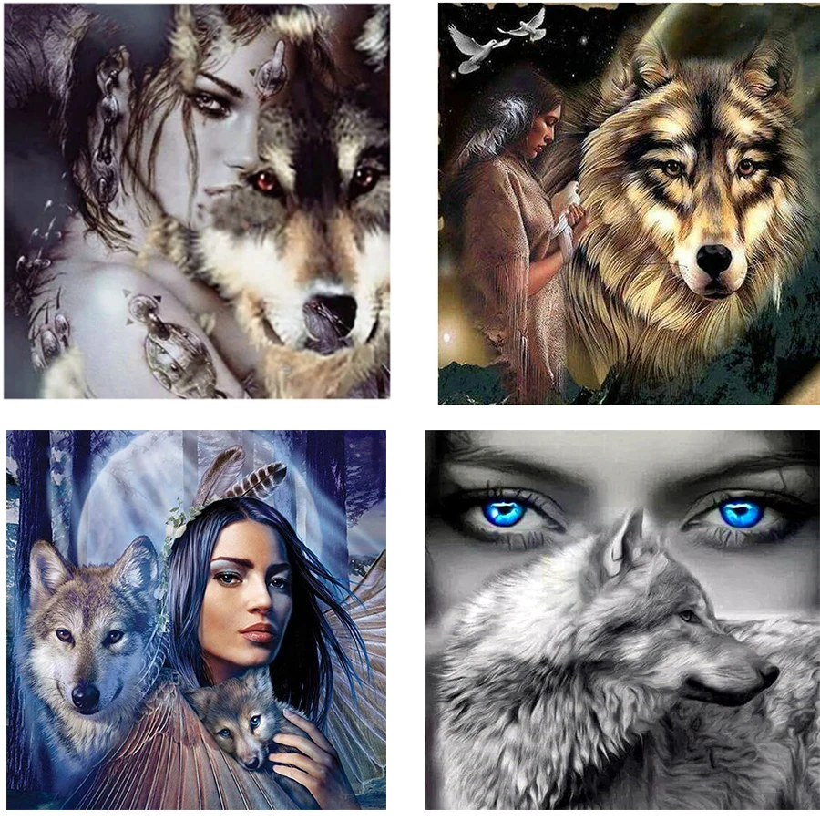 Алмазная живопись 5D с изображением волчьей девушки, вышивка крестиком, полная вышивка, украшение для гостиной