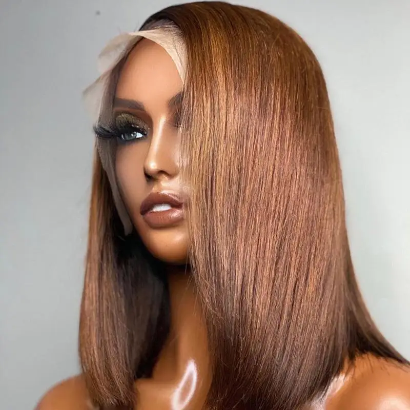 Парики 1B 27 с эффектом омбре, медовый блонд, без клея, Т-образный парик из натуральных волос, короткий Боб, бразильские передние парики, плотность 180% с детскими волосами Реми