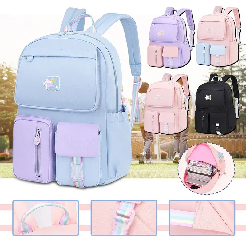 Рюкзаки с радужным плечевым ремнем в Корейском стиле для девочек-подростков, школьные модные рюкзаки, детский рюкзак, детский рюкзак