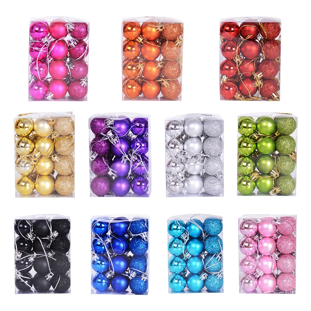 24 шт.корт. Рождественские шары 3 см, Рождественская вечеринка, подвесной шар, украшение для потолка в торговый центр, искусственные украшения для рождественской елки