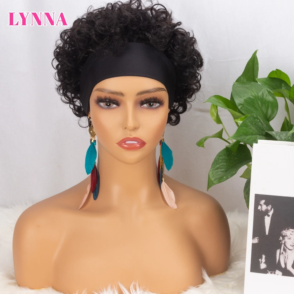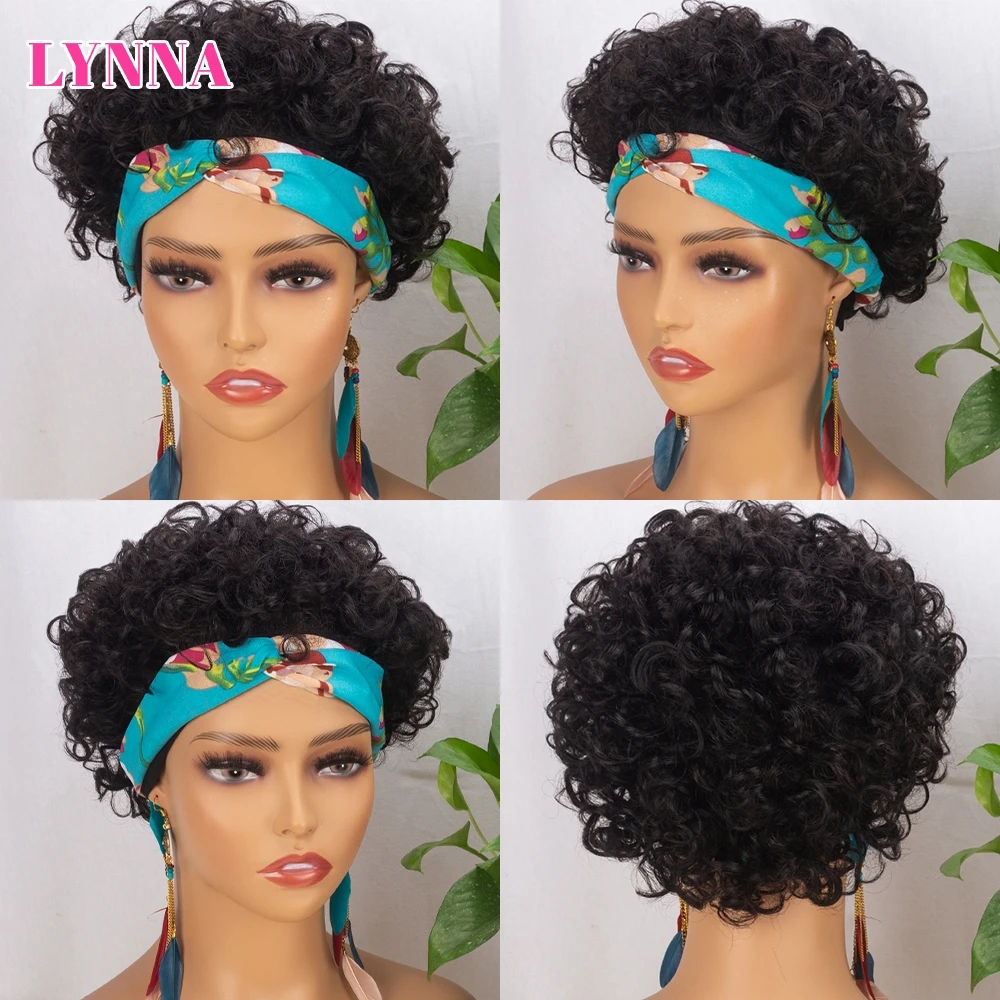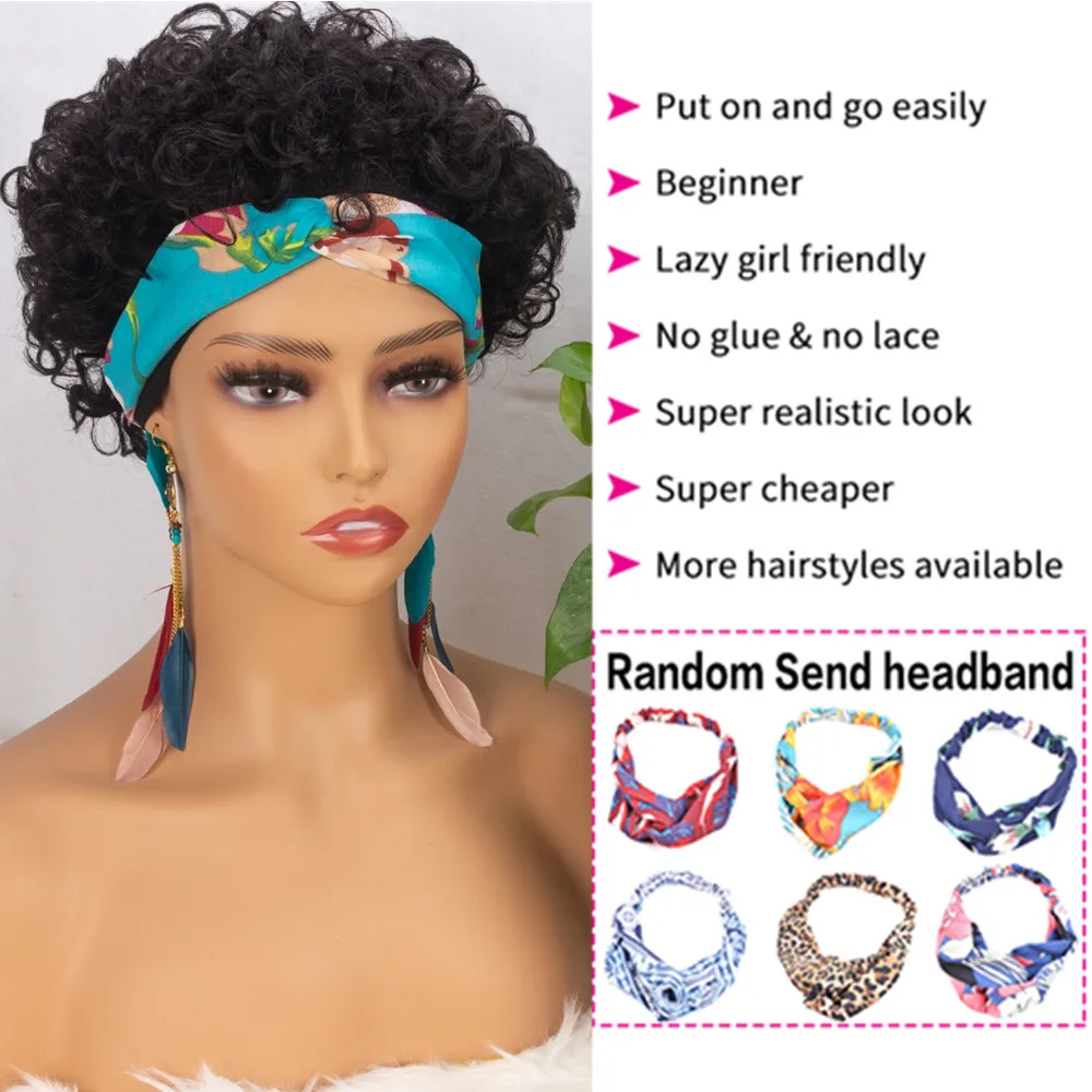 Парик из парик с головной повязкой натуральных волос, волнистые, полностью машинное изготовление, короткие кудрявые, парик с головной повязкой парики из натуральных волос для чернокожих женщин