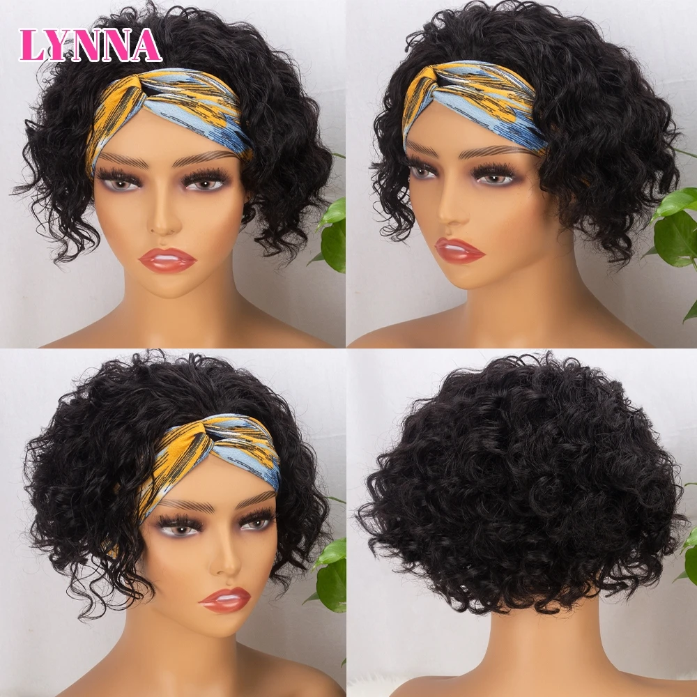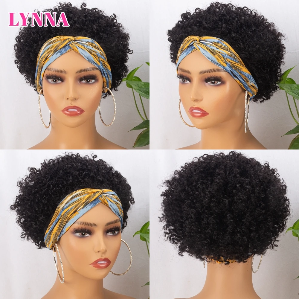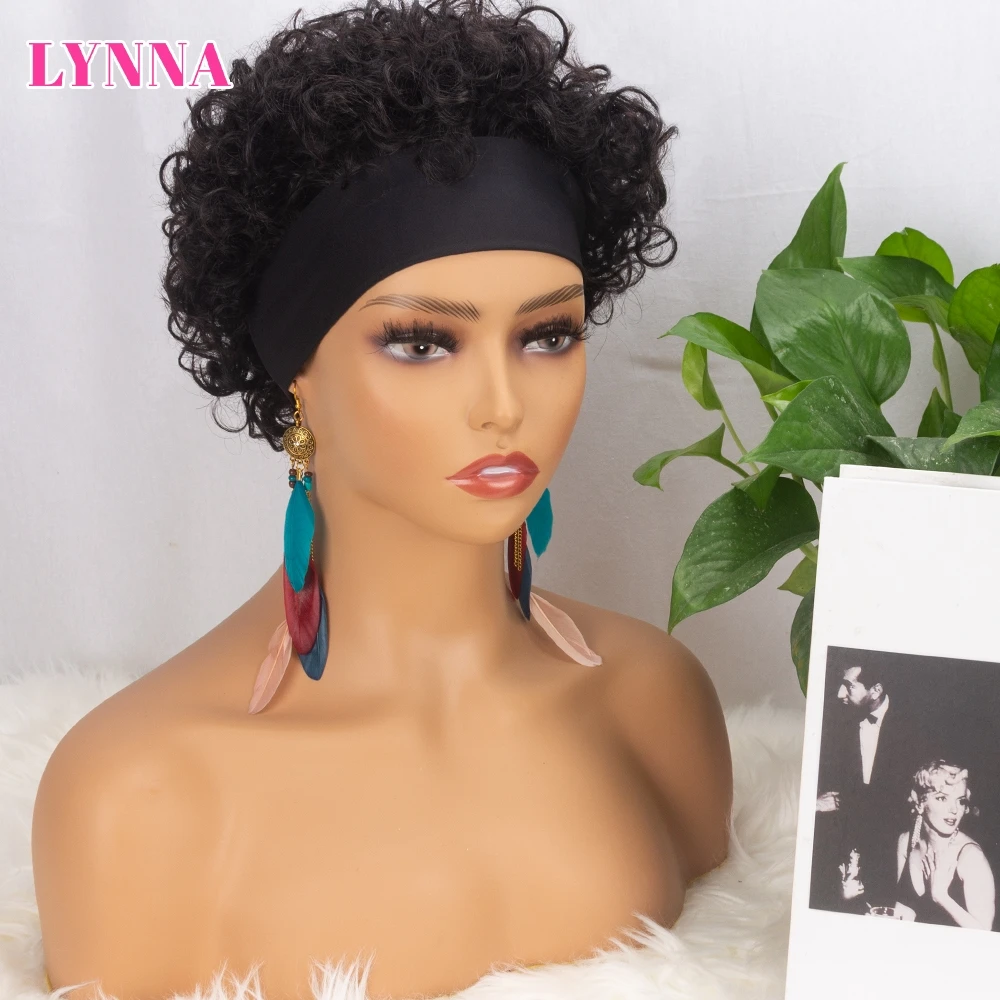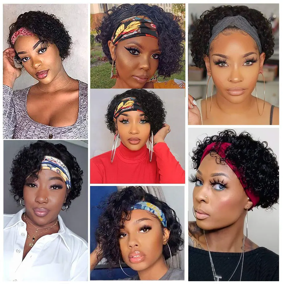 Парик из парик с головной повязкой натуральных волос, волнистые, полностью машинное изготовление, короткие кудрявые, парик с головной повязкой парики из натуральных волос для чернокожих женщин