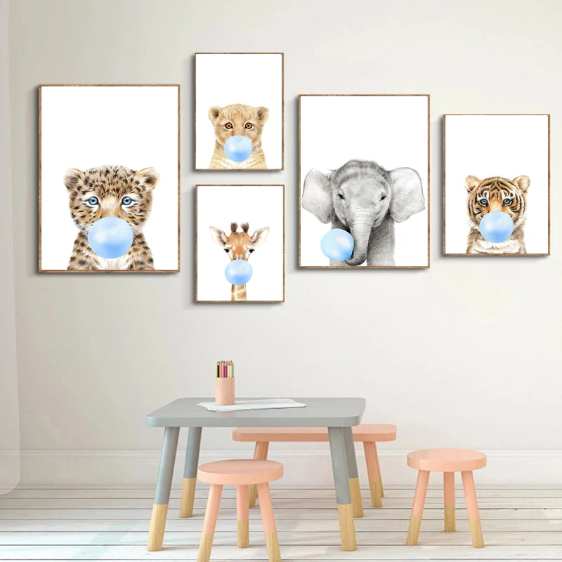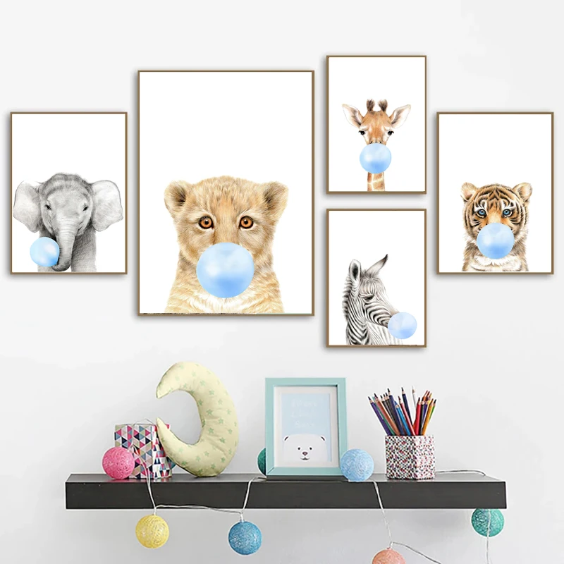Животные выдувание пузырьков жираф зебра детская настенная Картина на холсте постеры и принты настенные картины декор для детской комнаты
