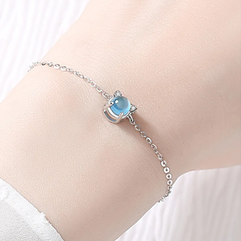 Женский браслет с кошачьими ушками CIAXY, креативный браслет из стерлингового серебра 925 пробы с синими кристаллами Для Подружек
