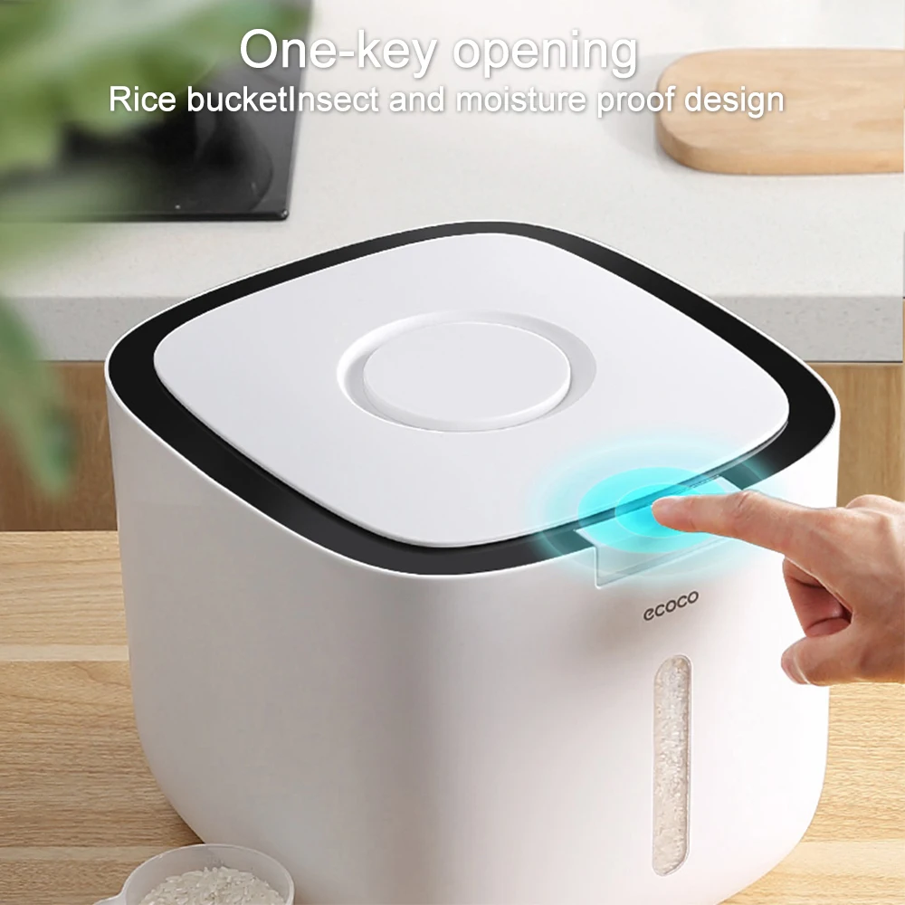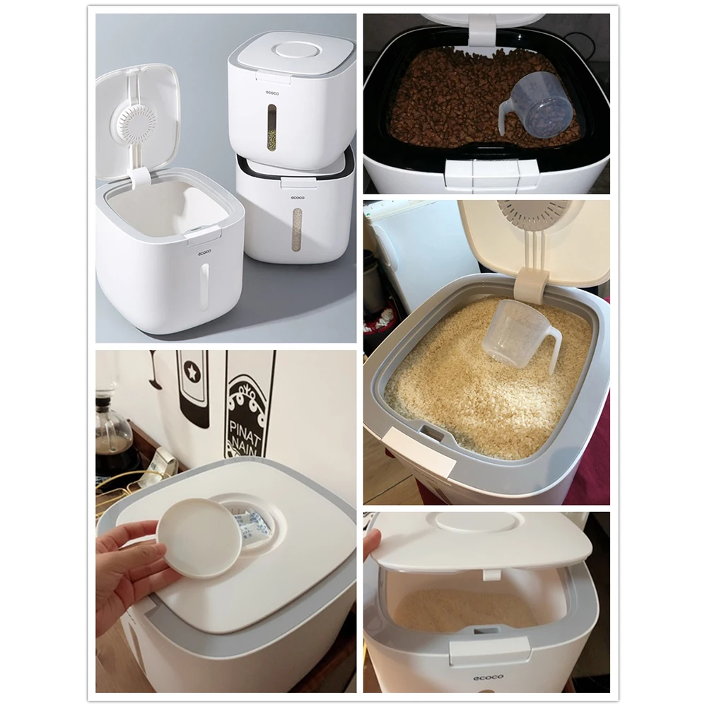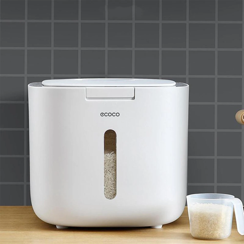10 кг риса Герметичный для хранения сухих продуктов контейнер, водонепроницаемый, влагостойкий и насекомых ведро риса, контейнер для хранения с градуированной чашкой, используется для муки/овса/пяти зерен/риса/печенья и т. Д.