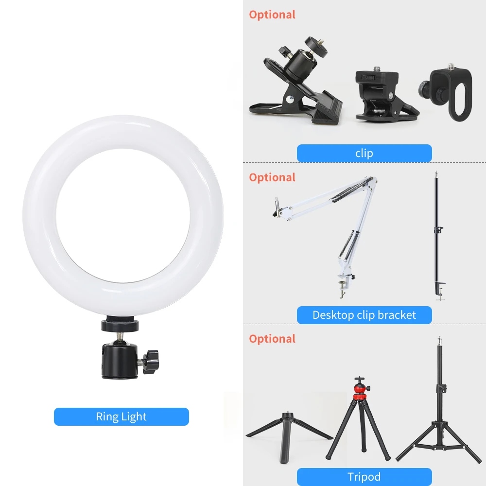 5. Кольцевой светильник USB порт работает с большинством устройств, поддерживающих порт Usb, таких как ноутбук, ПК, внешний аккумулятор, зарядное устройство USB, адаптер переменного тока и т. д.