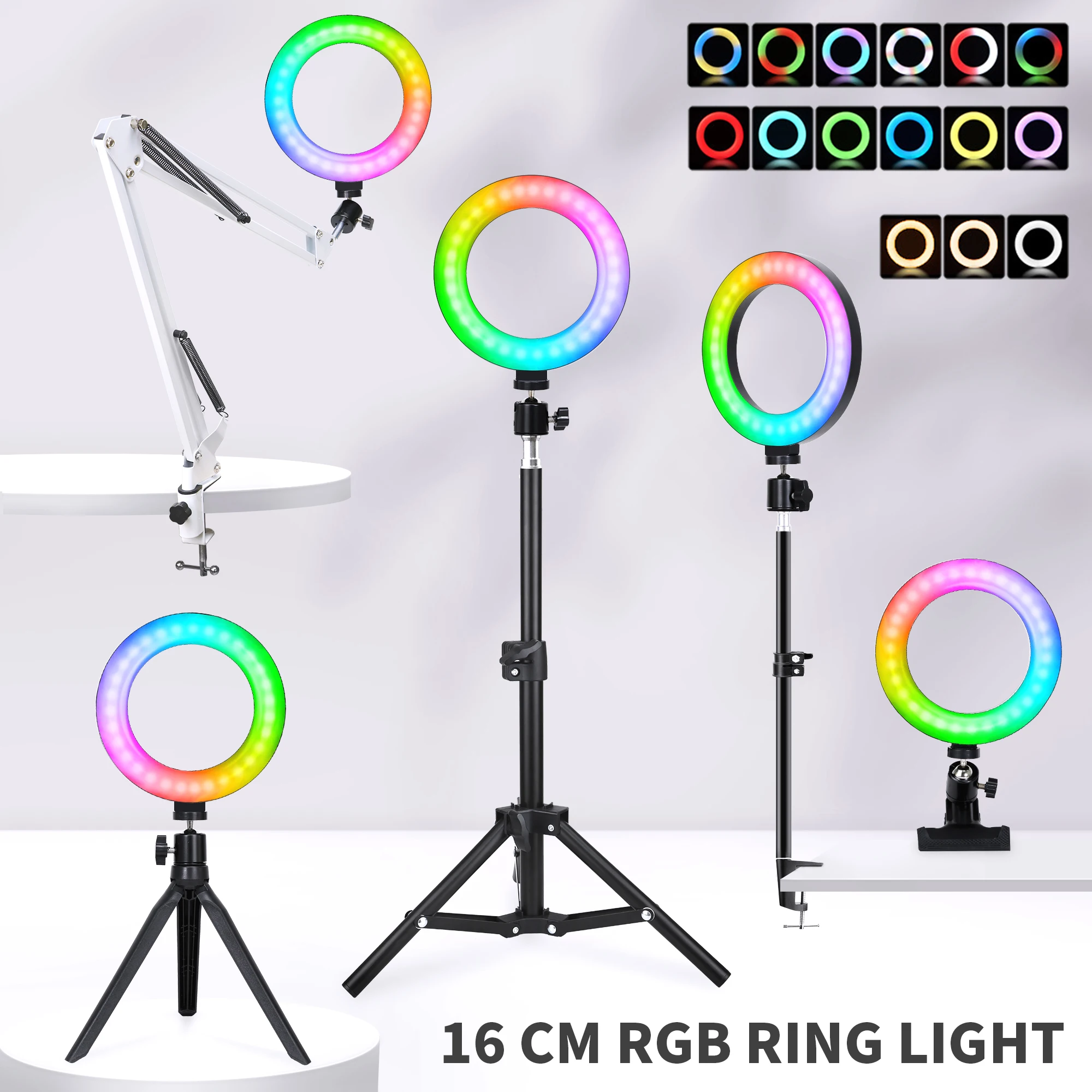 1,15 RGB цвет s и 3 нормальный цвет режим: Последний кольцевой Светильник обеспечивает тепло, мягкий, белый, И 15 цветовых режимов RGB, чтобы выбрать и убедиться, что вы всегда можете получить правильный цветной светильник для различных обстоятельств. Идеально подходит для украшения в помещении и на открытом воздухе, таких как фотографы, визажисты, прямые трансляции видео, создатели видео, день рождения, вечерние и т. Д.