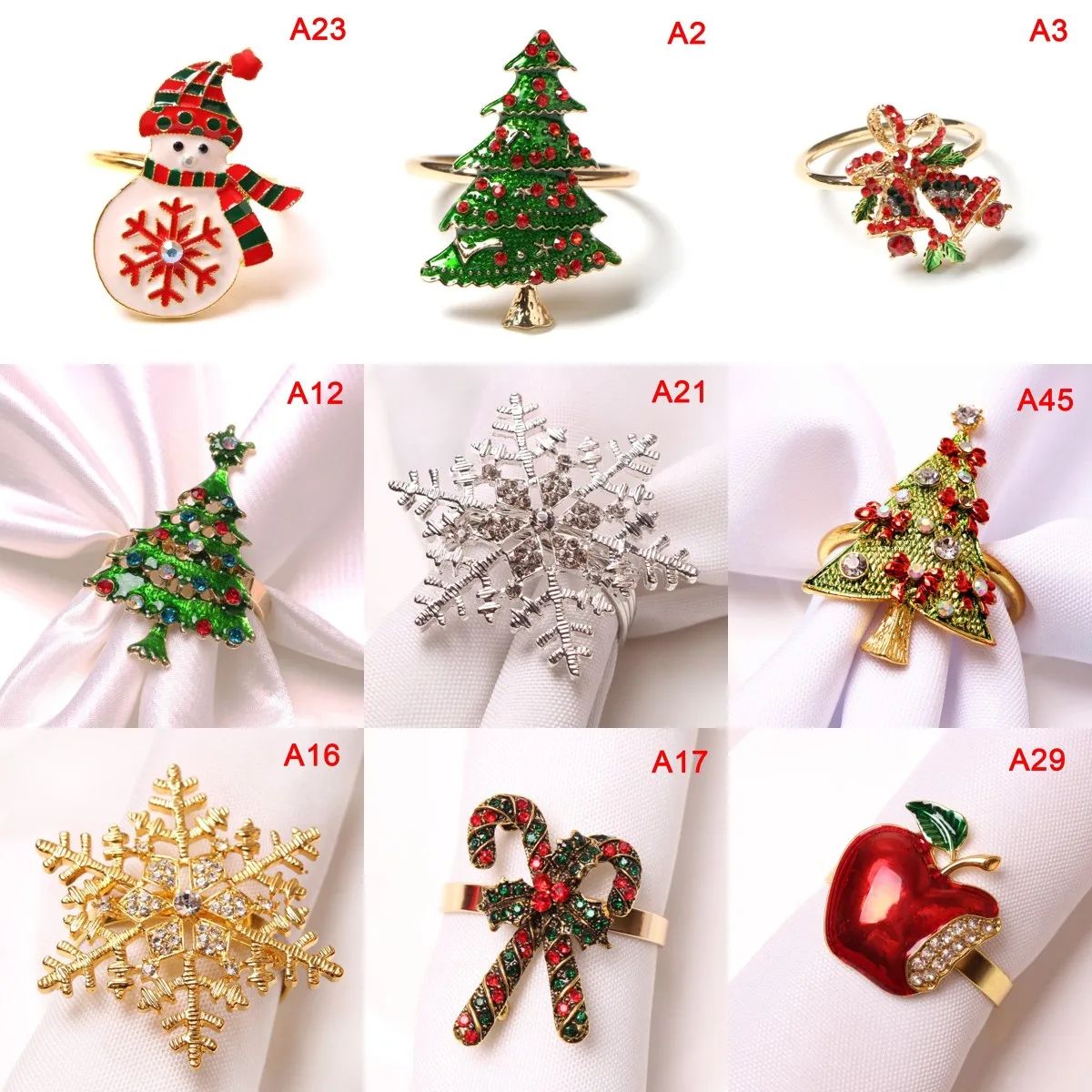 46 стилей, рождественские кольца для салфеток, держатели для салфеток, кольца для праздника, Рождественское украшение для стола, Пряжка для салфеток с оленем