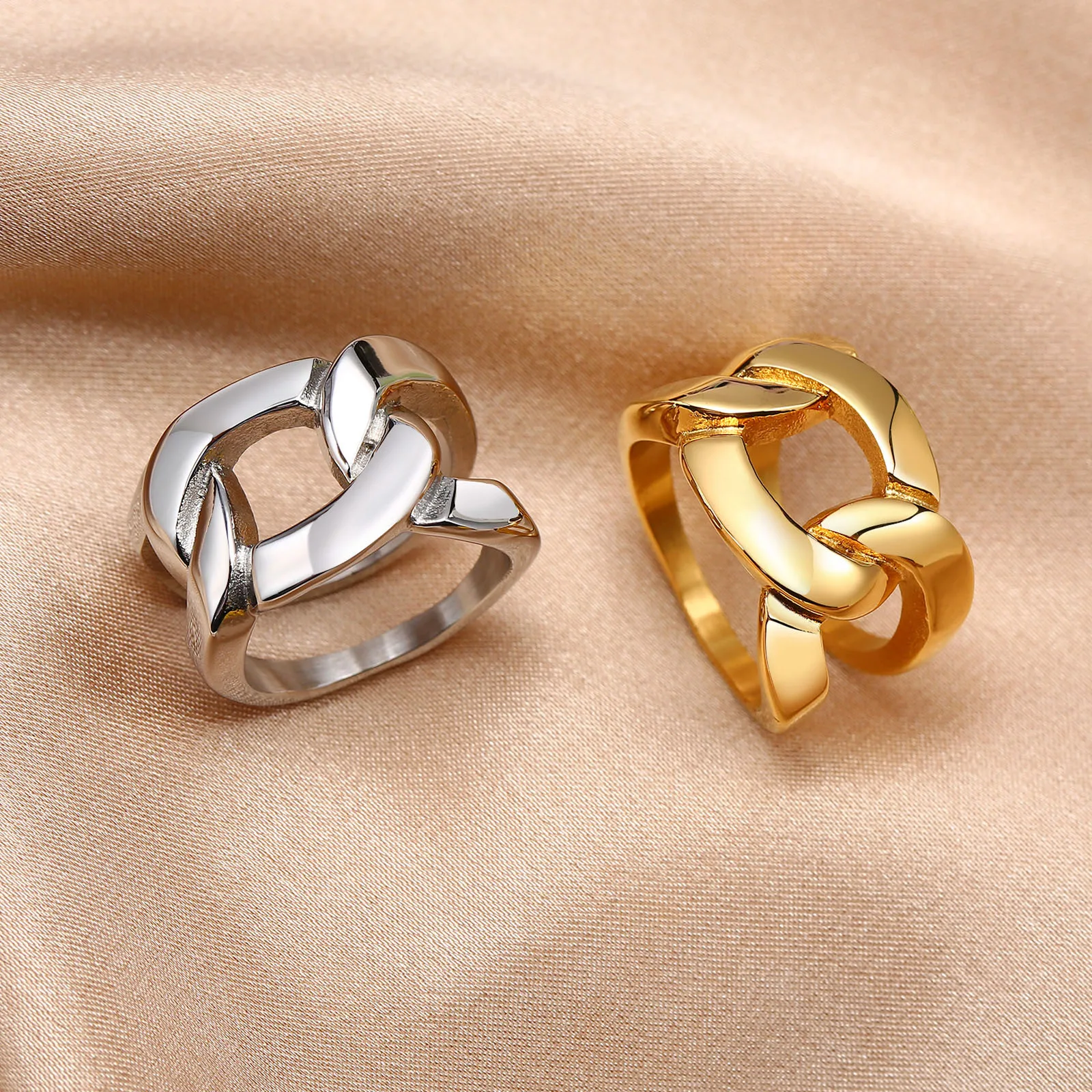 Кольца с крупной цепочкой для женщин, кольца из нержавеющей стали, витые геометрические кольца, шикарный женский подарок на палец, удобные, подходят для размера США