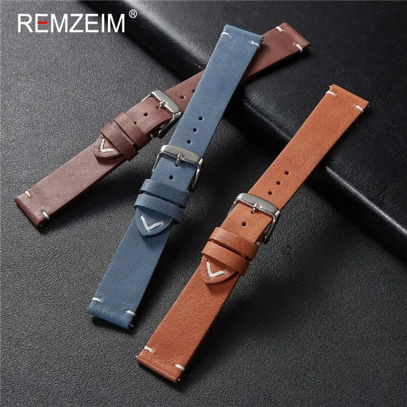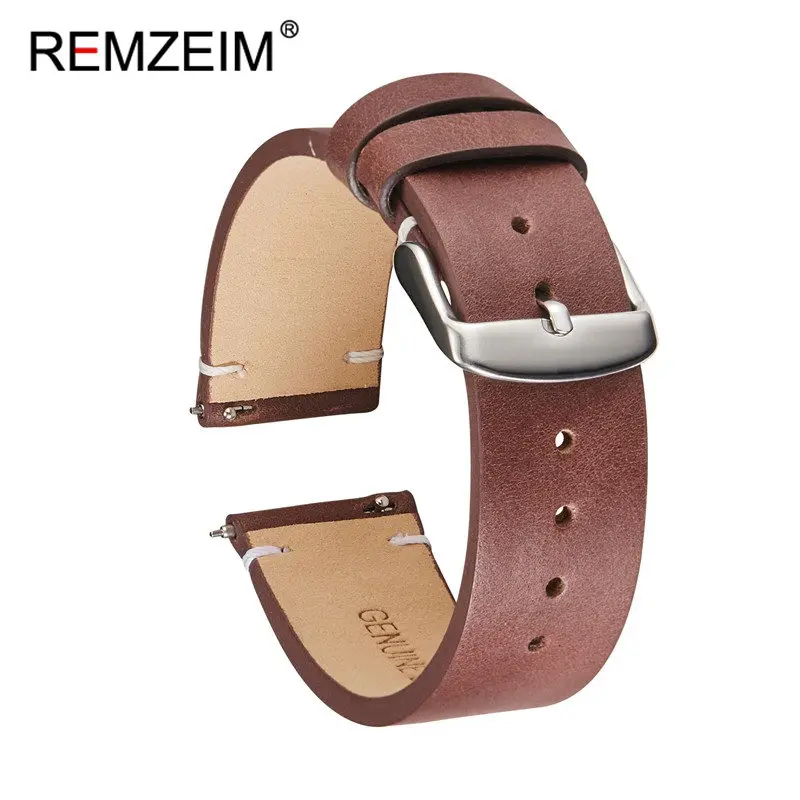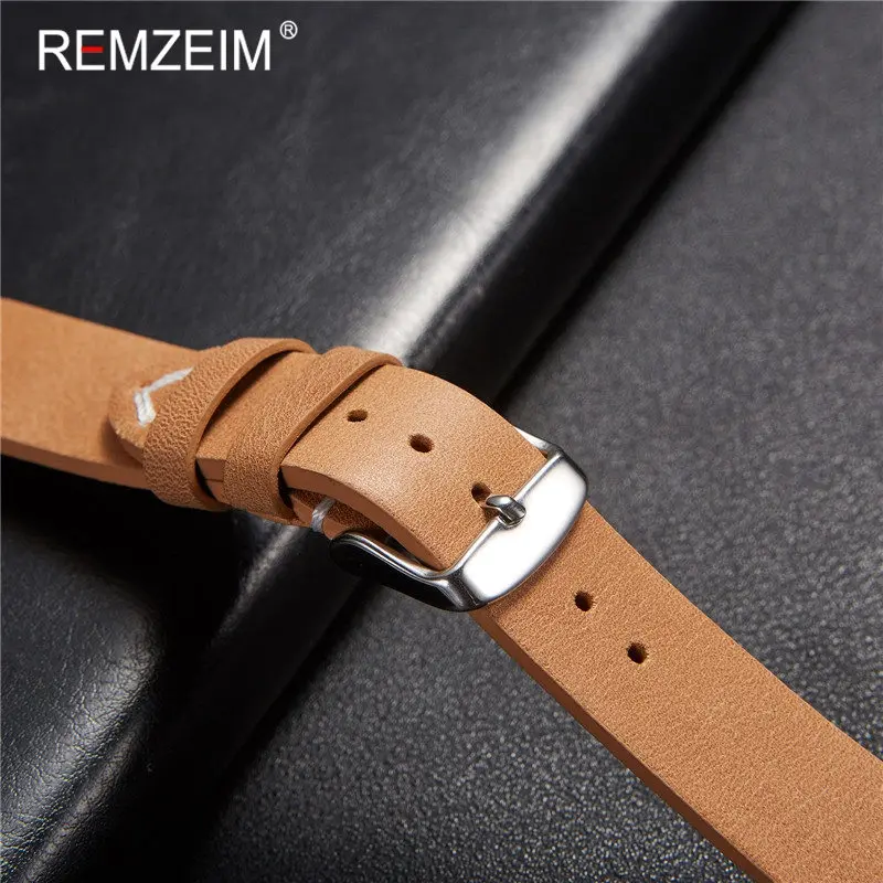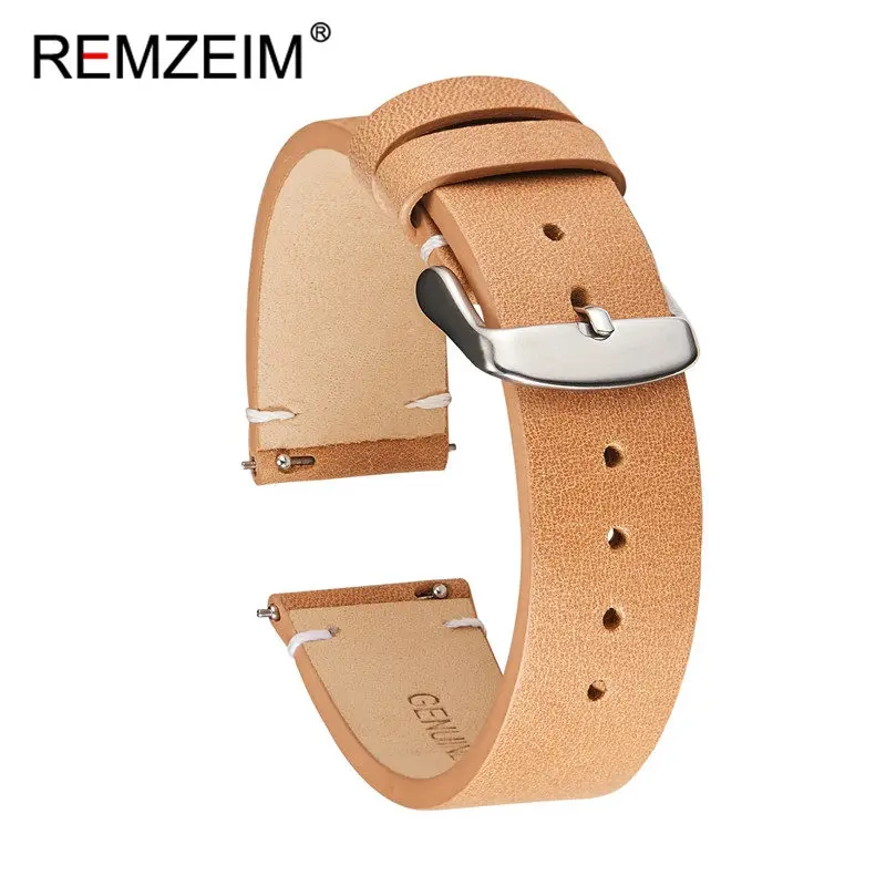 Ремешок кожаный быстросъемный REMZEIM для наручных часов, мягкий матовый браслет из телячьей кожи для смарт-часов, 18 мм 20 мм 22 мм
