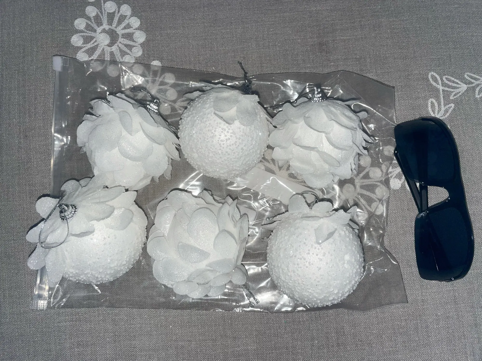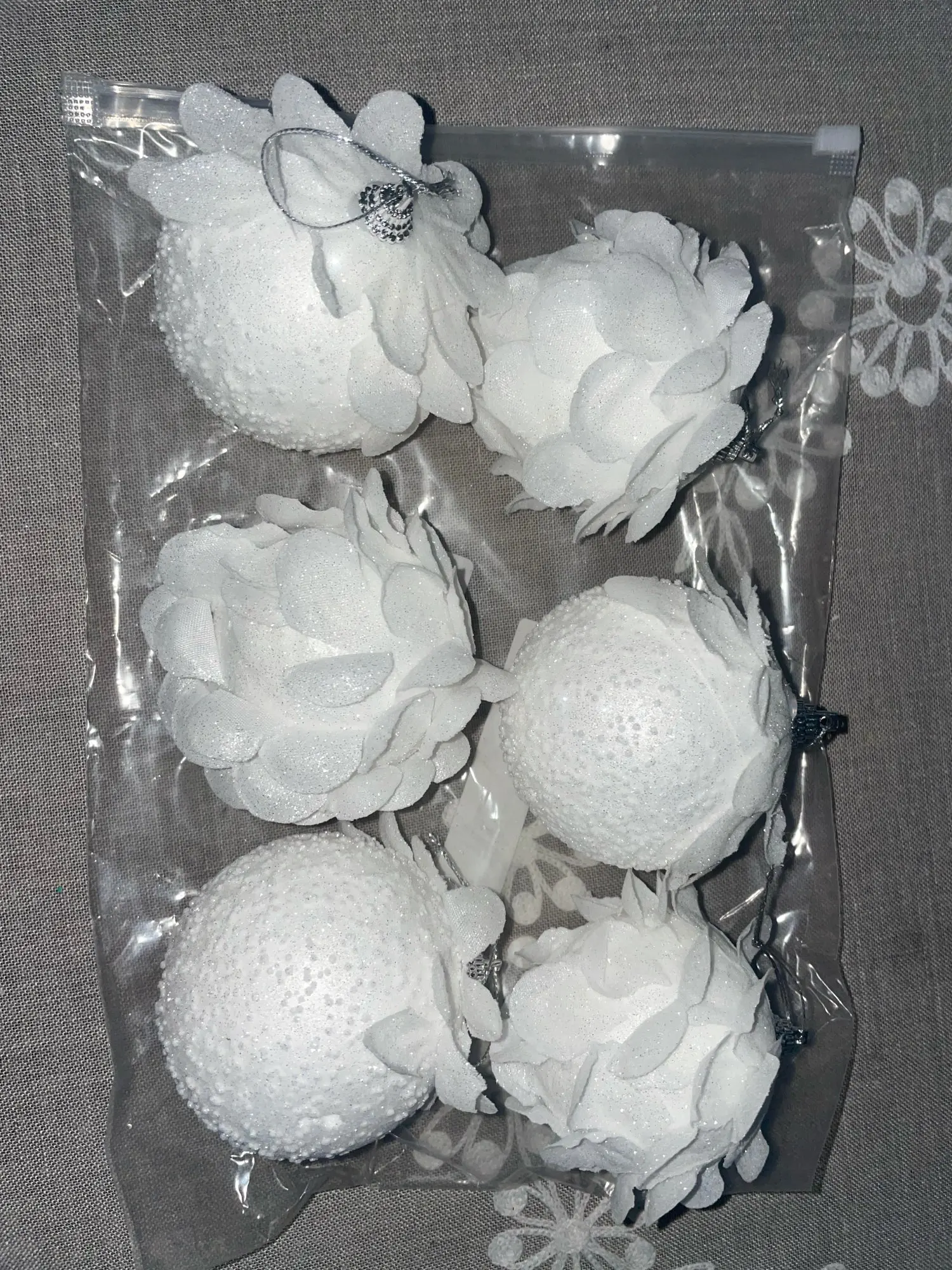 Рождественские шарики с белыми лепестками, праздничный декор, шар из блестящей пены для домашних животных, детские украшения сделай сам для рождественской елки, шарики, подвески, подарок