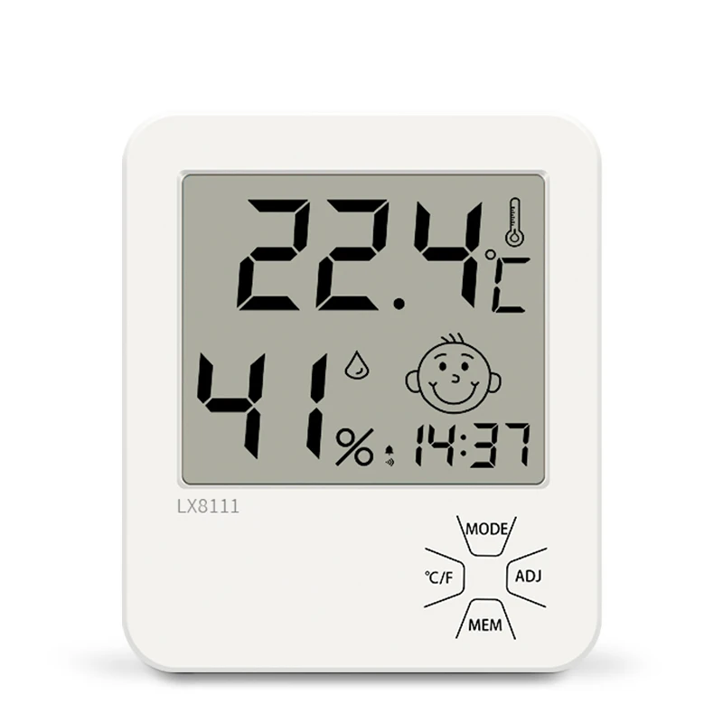 Индикатор комфорта со значком лица: температурный датчик влажности оснащен значками лица, чтобы быстро указать состояние сухого/комфортного/влажного воздуха, чтобы уведомить вас о необходимости настройки увлажнителя или осушителя воздуха соответственно и обеспечить, чтобы вы всегда были в наиболее комфортной среде