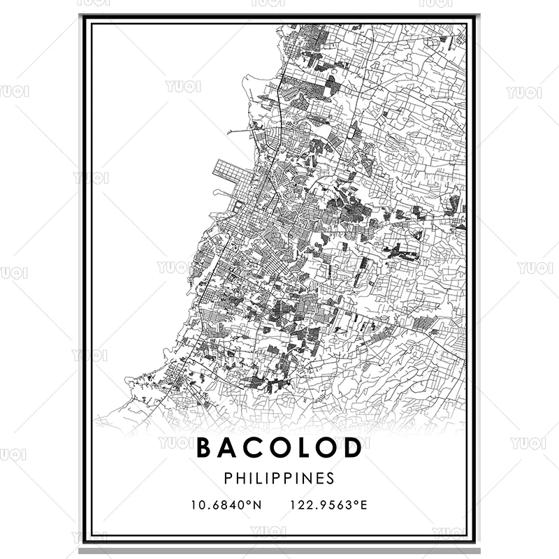 Черно-белый холщовый постер с принтом карты города стальбум, Соврем...
