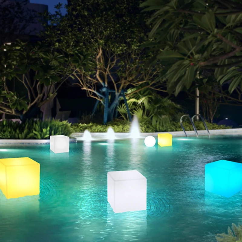 Светодиодный кубический светильник RGB, 10 см15 см20 см, водонепроницаемый, IP68, перезаряжаемый, светодиодный светильник, пульт дистанционного управления для бара, домашнего декора