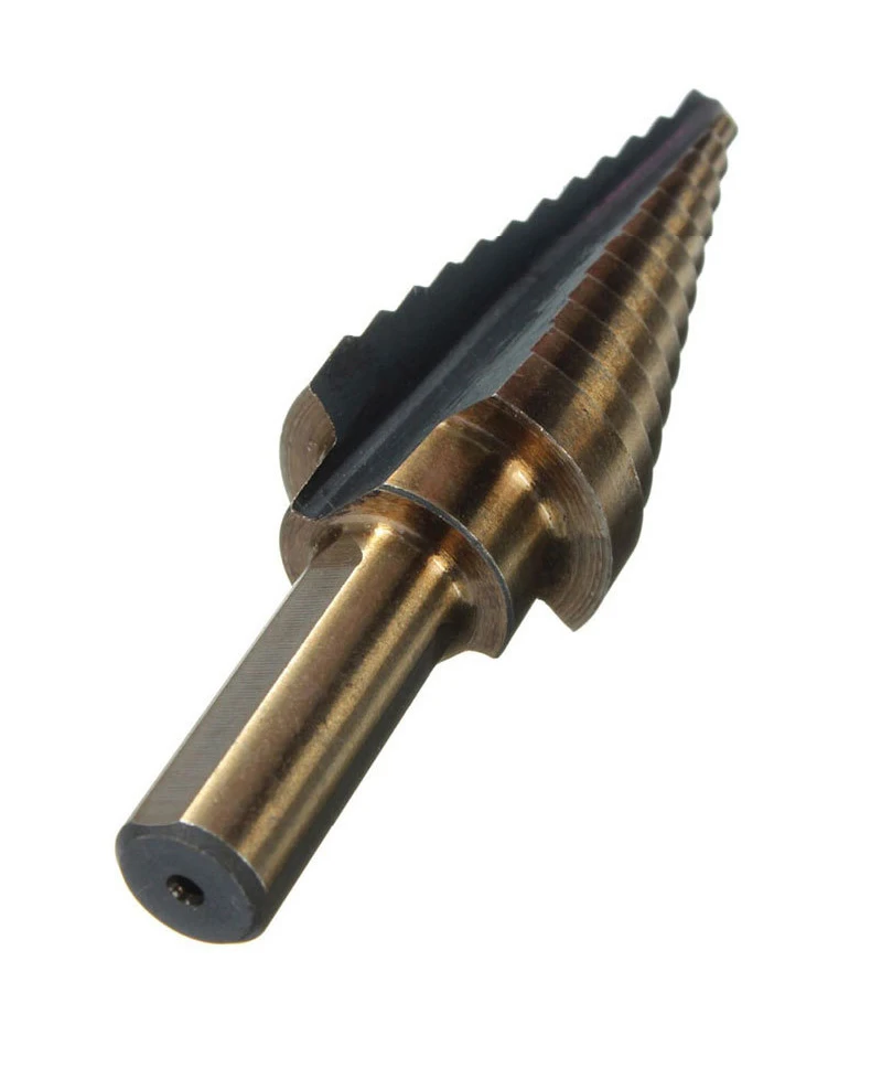 Особенности:Материал: Высокоскоростная стальОбработка поверхности: с титановым покрытием. Классическая Высокоскоростная сталь с титановым покрытием для доказанных возможностей и долговечности сверления отверстий из пластика, алюминия, меди, нержавеющей стали и многих других типов листового металла.Легкое сверление: двухслойная конструкция обеспечивает более быструю, плавную резку; При малом давлении наборы могут резать по дереву, листу, стали и другим поверхностям.Идеально подходит для DIY: крошечное домашнее и общее строительство/инженерное использование (без использования Центрального перфоратора, легко ломается, применяется ступенчатая дрель.)Примечание:1. Для работы ручного сверла (выше 550 Вт) толщина составляет 1-2 мм, а диаметр отверстия больше 14 мм, требуется скамейка. (Рекомендуется сверлить заготовку с твердостью нержавеющей стали ниже 25 градусов)2. Во время бурения вода вводится во время бурения для охлаждения, что эффективно продлевает срок службы сверла. (Рекомендуемая скорость 250 ~ 400)
