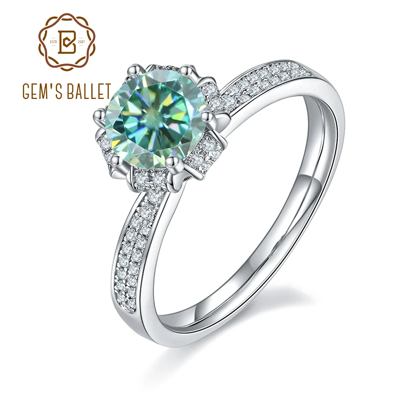 Женское кольцо с муассанитом GEM'S BALLET, круглое обручальное кольцо с муассанитом, с цветком 585 мм, 14 к, 10 к, 18 К, 6,5
