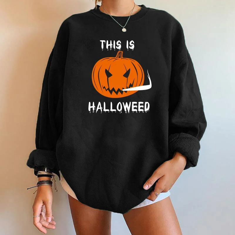 Женские свитшоты с забавным принтом тыквы на Хэллоуин, уличная одежда, Осенние Пуловеры с длинным рукавом и спущенными плечами, толстовки Moletom