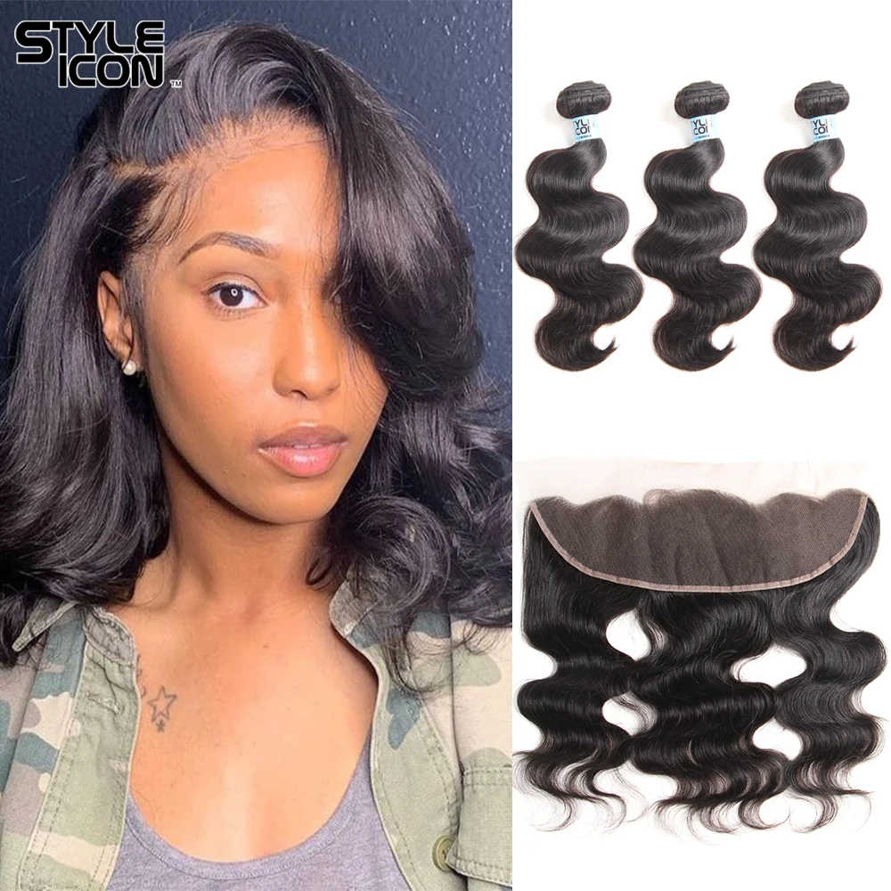 Styleicon бразильские волнистые пряди с фронтальной линией 2 3 пучка с фронтальной застежкой натуральные человеческие волосы плетение с фронтальной лентой