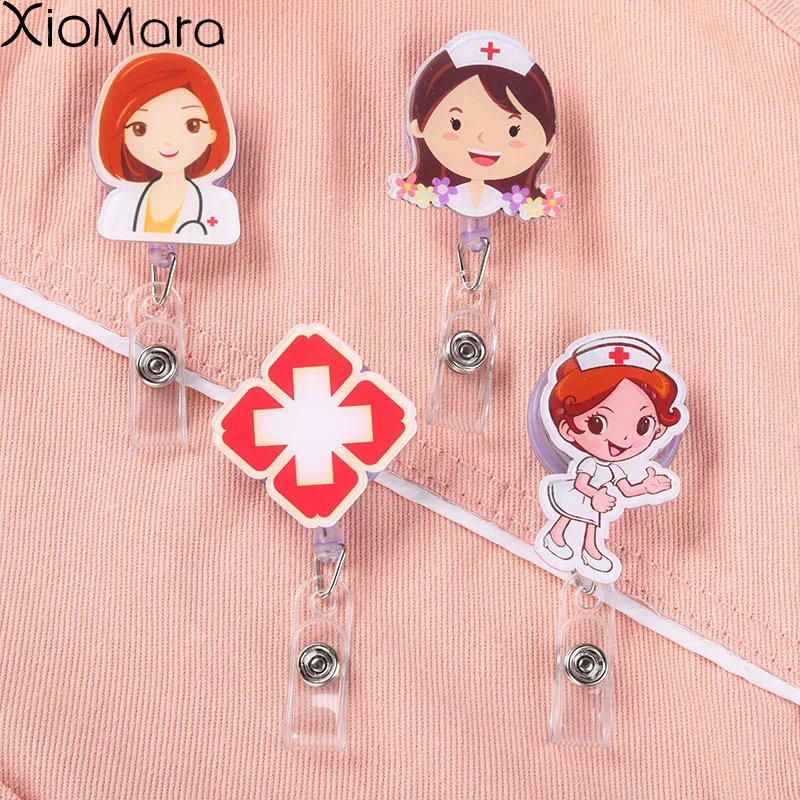 Значок медсестры выдвижная катушка тянуть идентификационное фото милый мультяшный дизайн зажим против потери медицинские шнурки для студентов