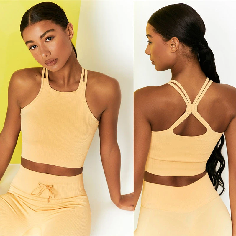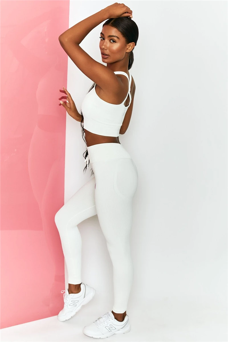 Женский комплект из двух предметов для йоги Feamle 2 шт. короткий топ для бара леггинсы вверх бесшовный спортивный костюм тренировочный наряд женская одежда