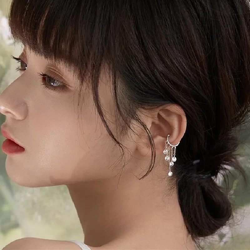 Женские круглые серьги-каффы с кисточкой и фианитом, без прокола, e...