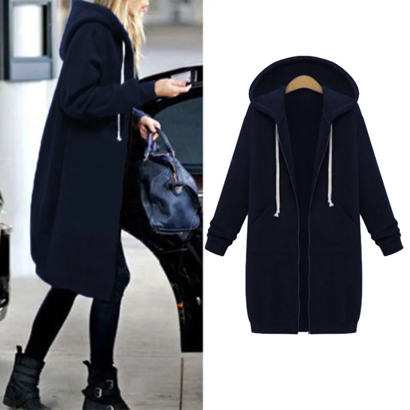 Осенне-зимние женские толстовки, повседневный свитшот, пальто на молнии, с карманами и длинным рукавом, верхняя одежда, Женская свободная зимняя куртка