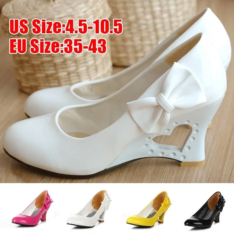 Размер: 34-43 элегантные женские свадебные туфли на танкетке с персиковым сердцем (желтый, белый, черный, розовый)