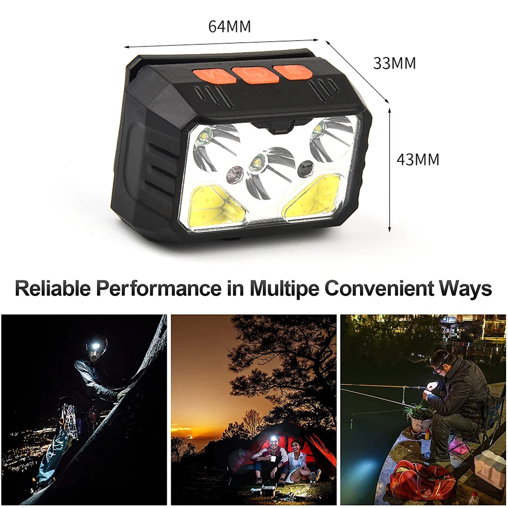 Мощный светодиодный светильник на голову с датчиком, светильник на голову, USB Перезаряжаемый налобный фонарь, водонепроницаемый, для кемпинга, пешего туризма