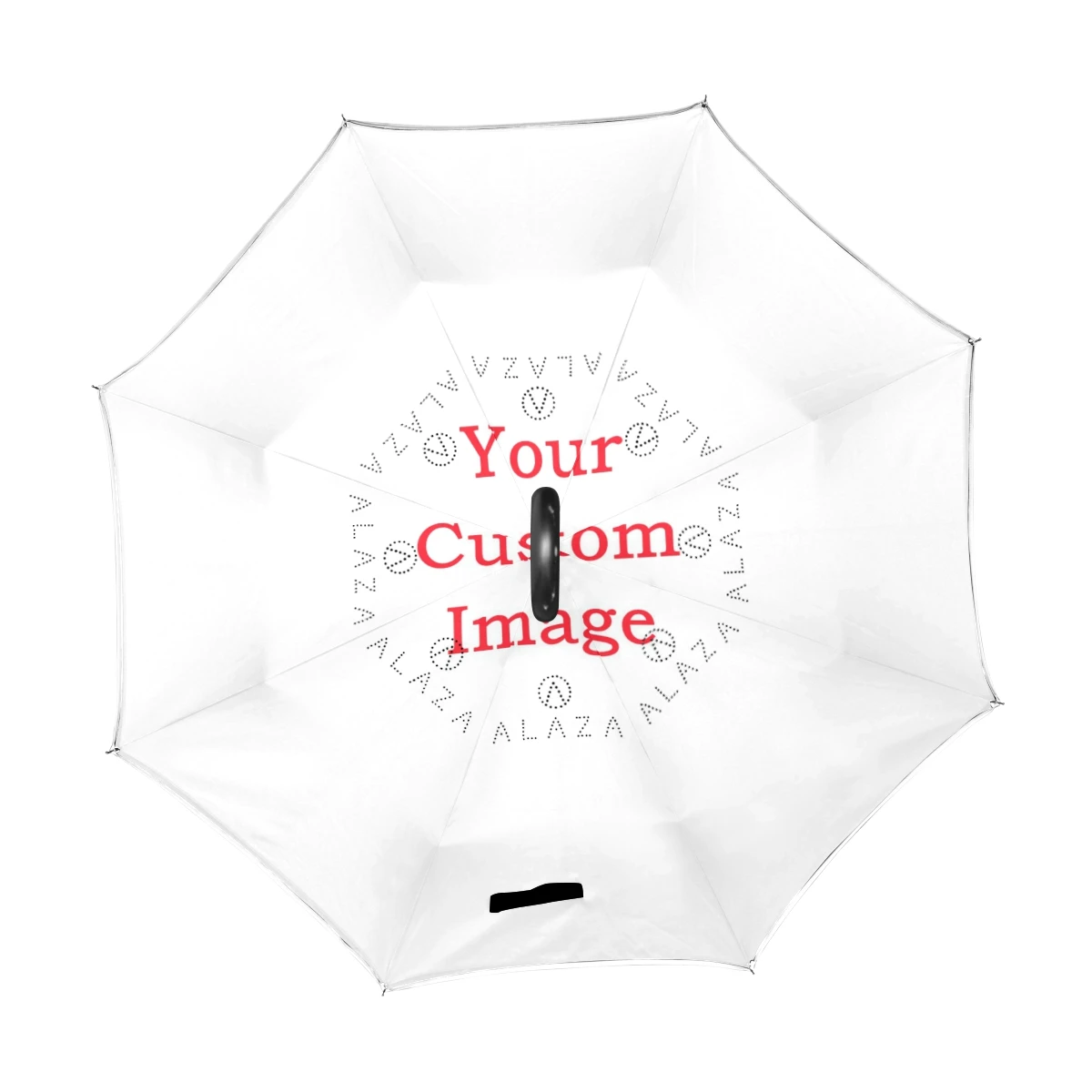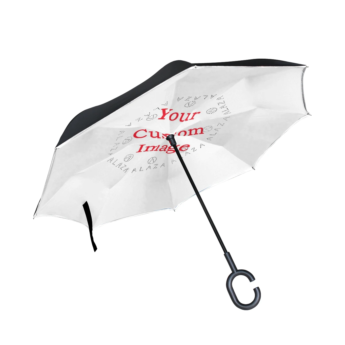 Индивидуальный узор Ветрозащитный Зонт от дождя для женщин и мужчин с длинной ручкой, двухслойный перевернутый автомобильный Зонт с подставкой